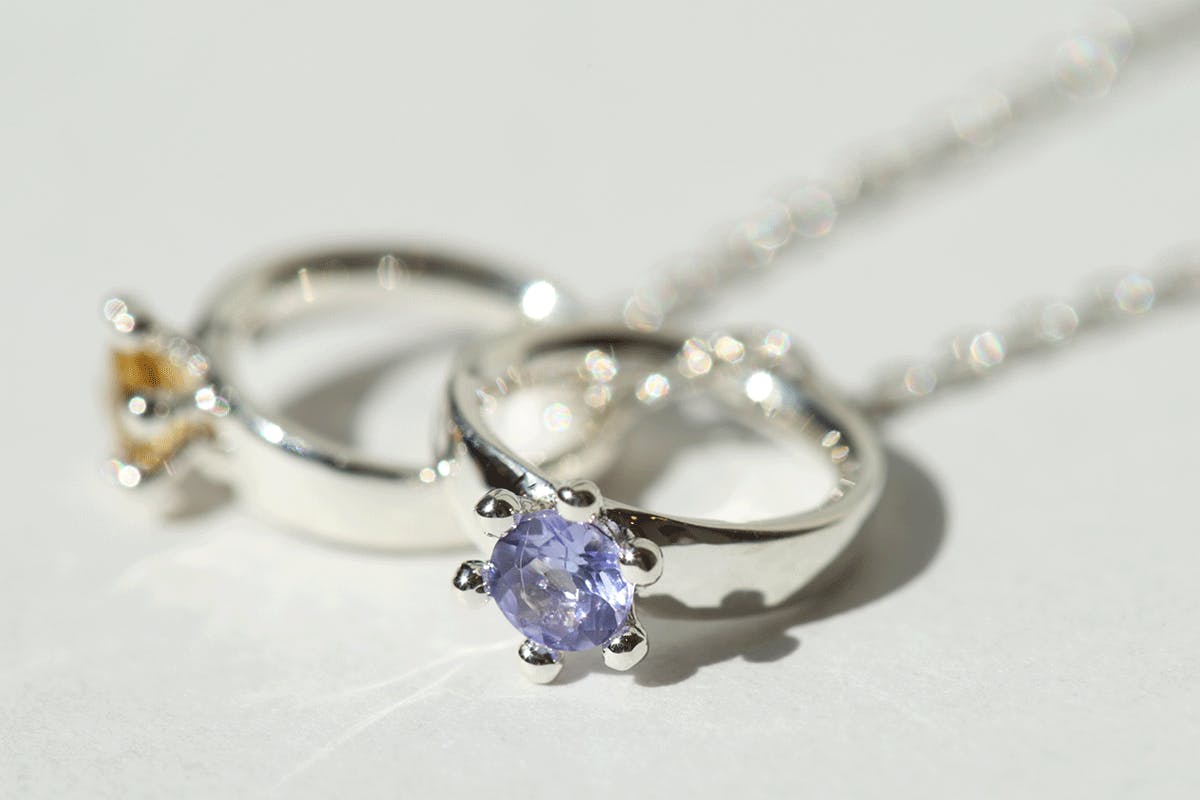 サファイア自身の持つ「誠実さ」や「一途な想い」という石言葉と、“サムシングブルー”という「花嫁が何か一つ青いものを見えない箇所に身に着けることで幸せになれる」というジンクスから、結婚指輪の内側に使用されることも好まれます。