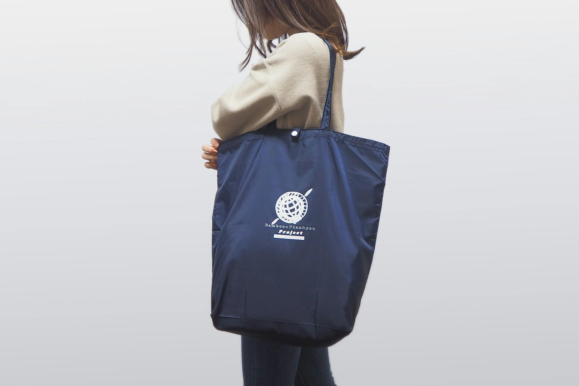 『BambooにThank you Project』のロゴがプリントされた、オリジナルエコバッグ。