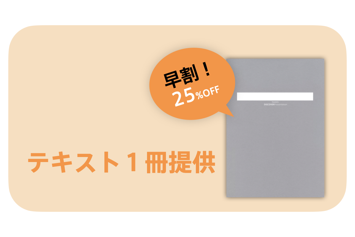 プレゼン塾に実際に参加いただくコースです。オリジナルテキストを提供させていただきます。