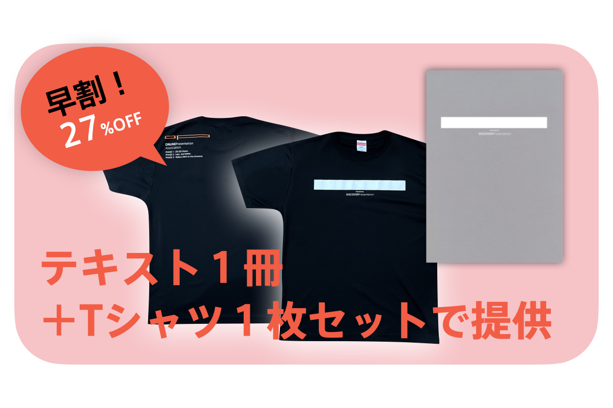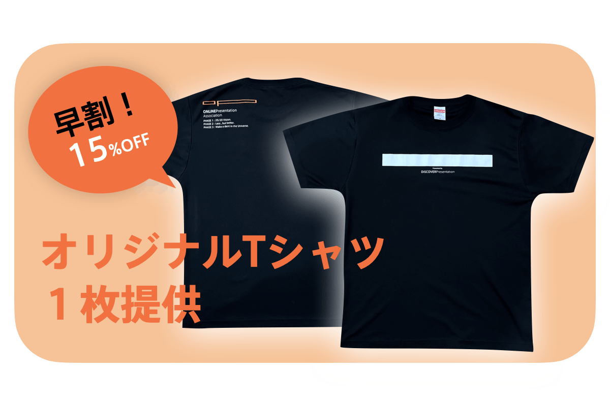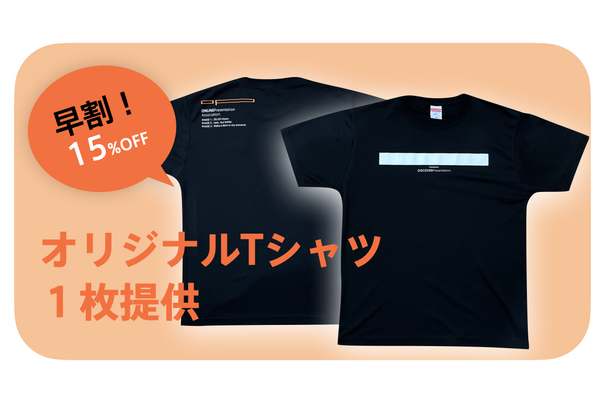 プレゼン塾と協会のロゴが入ったオリジナルTシャツを提供させていただきます。