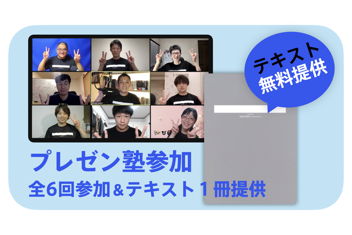 このテキスト単体でも、伝える力を学んでいただくことは可能ですが、私たちのプレゼン塾にぜひご参加ください。