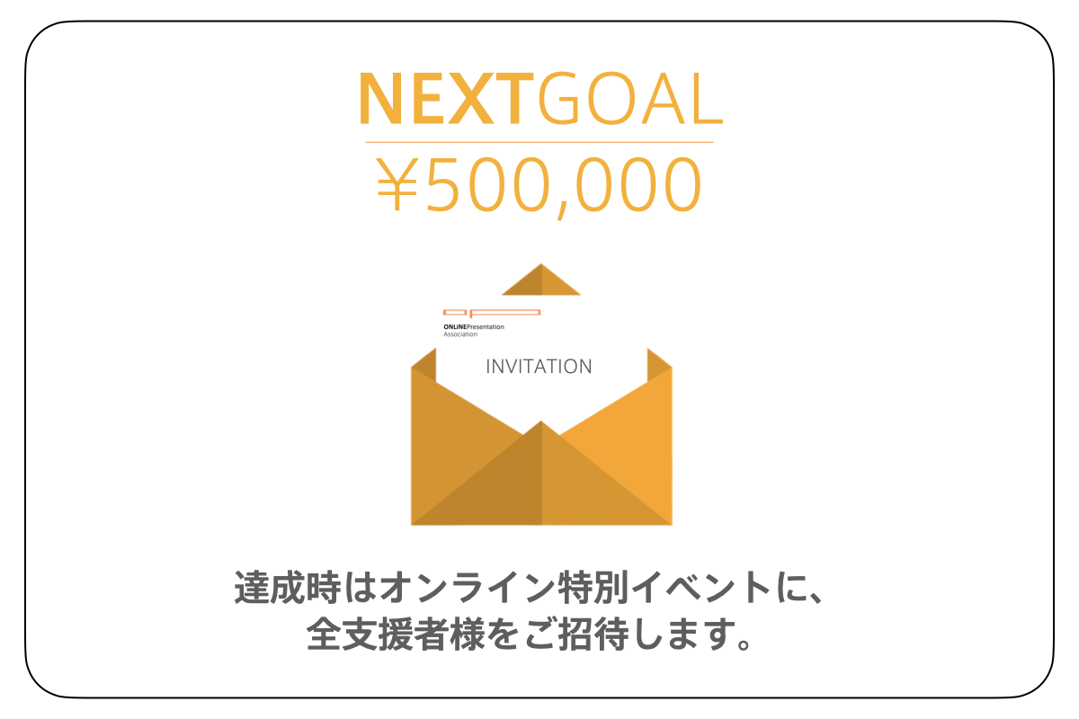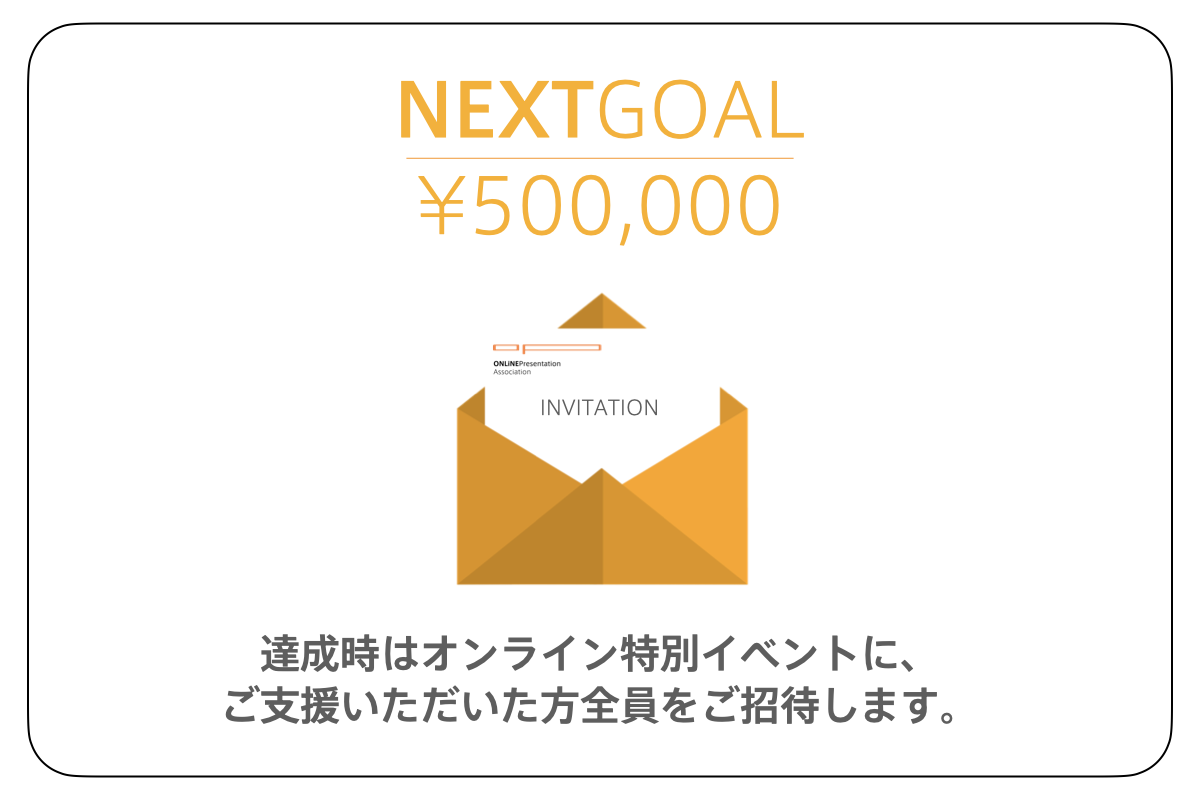 当協会は、プレゼン思考・伝える力を学ぶ機会を日本中の人たちにお届けするために、2021年9月に設立されました。今回は、テキスト制作とプレゼン塾の運営費をご支援いただくためにこのプロジェクトを立ち上げました。