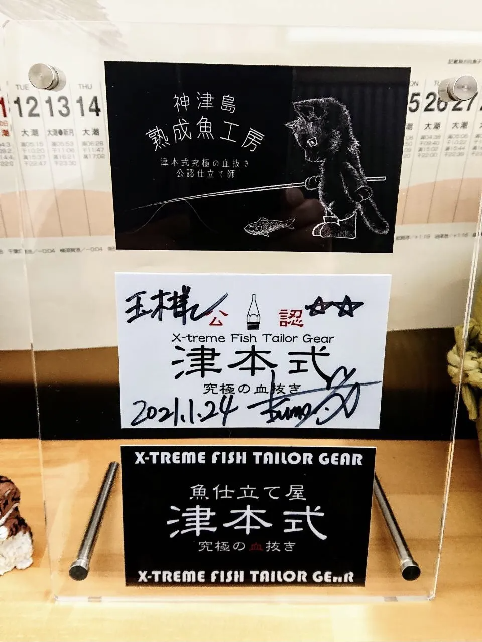 津本さんは現在、適切な魚の締め方や処理の仕方等YouTubeやSNSで広く情報発信されており、水産資源の保護・回復や魚食改革への取り組みに共感した為、私も試験を受け津本式究極の血抜き公認仕立て師となりました。