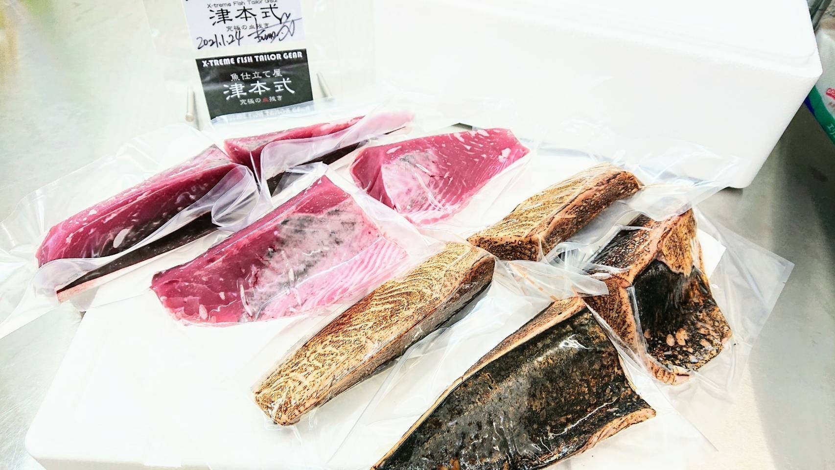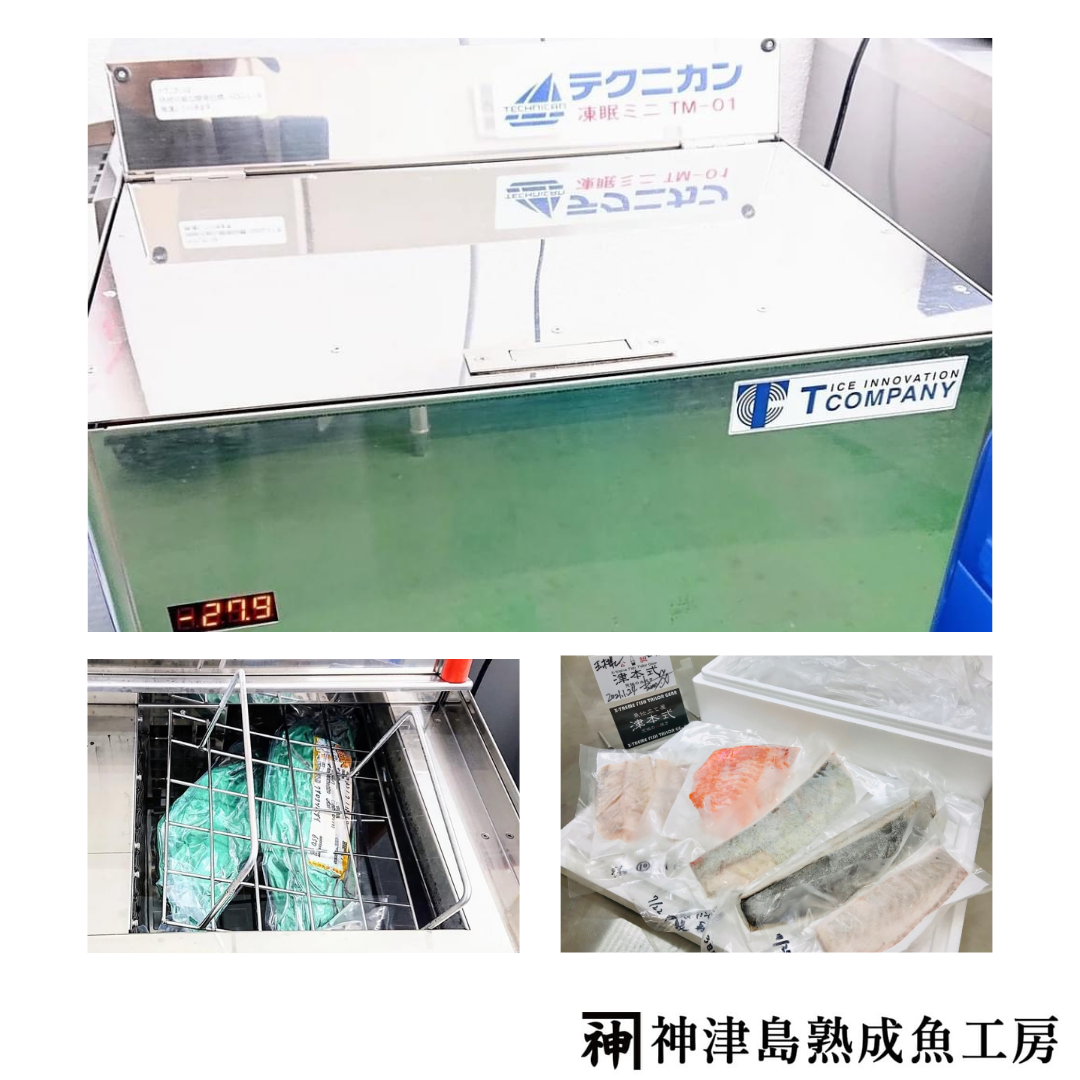度重なるコロナ緊急事態宣言の影響も大きく観光客激減等の影響により当店も厳しい状況が続いていましたが、この機をチャンスと捉え、数年後導入予定だった話題の「(株)テクニカンの液体急速冷凍機【凍眠】」を導入し、【津本式 究極の血抜き × 極熟成】で旨味や食感を閉じ込めた『生食用 ・急速冷凍熟成魚』の商品開発テストを日々行ってきました。