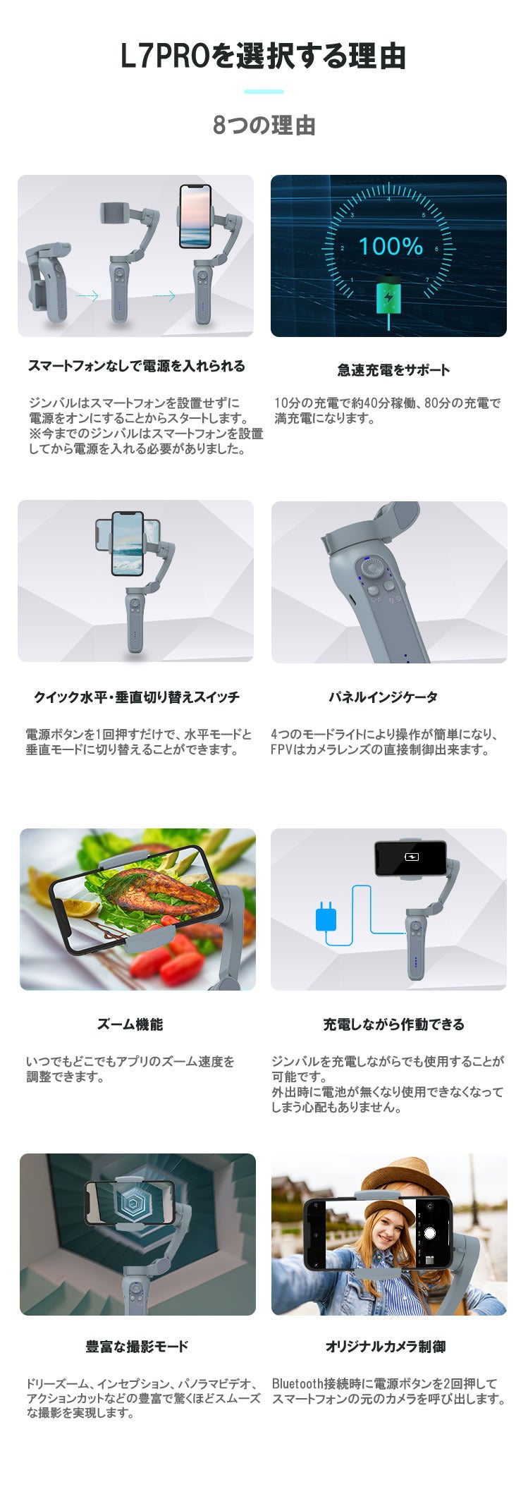 ジンバルを使用することで、その撮影はより効果的になります。