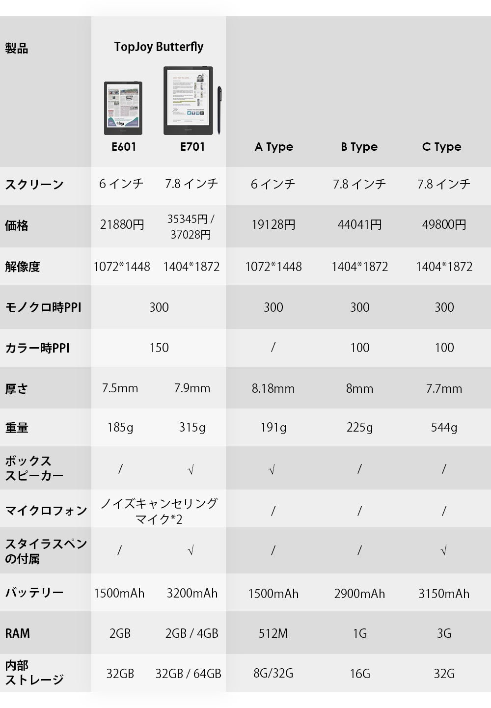 TopJoy Butterflyは、ポータブル、軽量、コンパクトなので、普段使いに最適な電子書籍リーダーです。