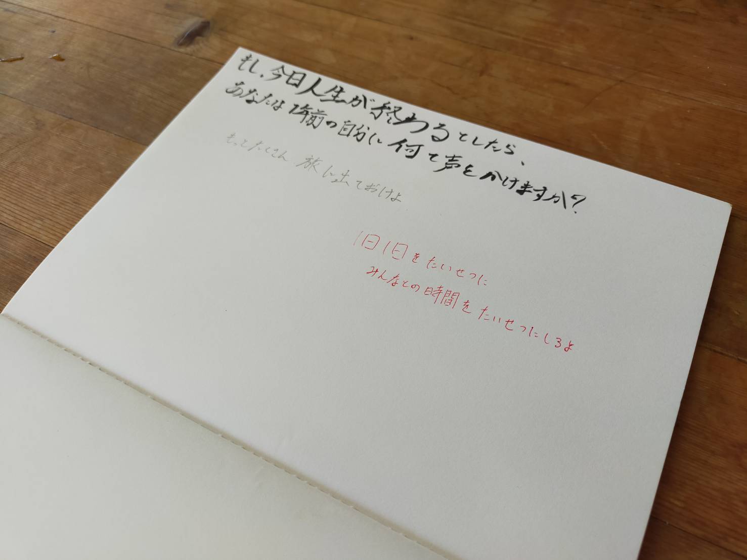 ①もし今日人生が突然終わるとわかったら、1年前の自分になんて声をかけますか?