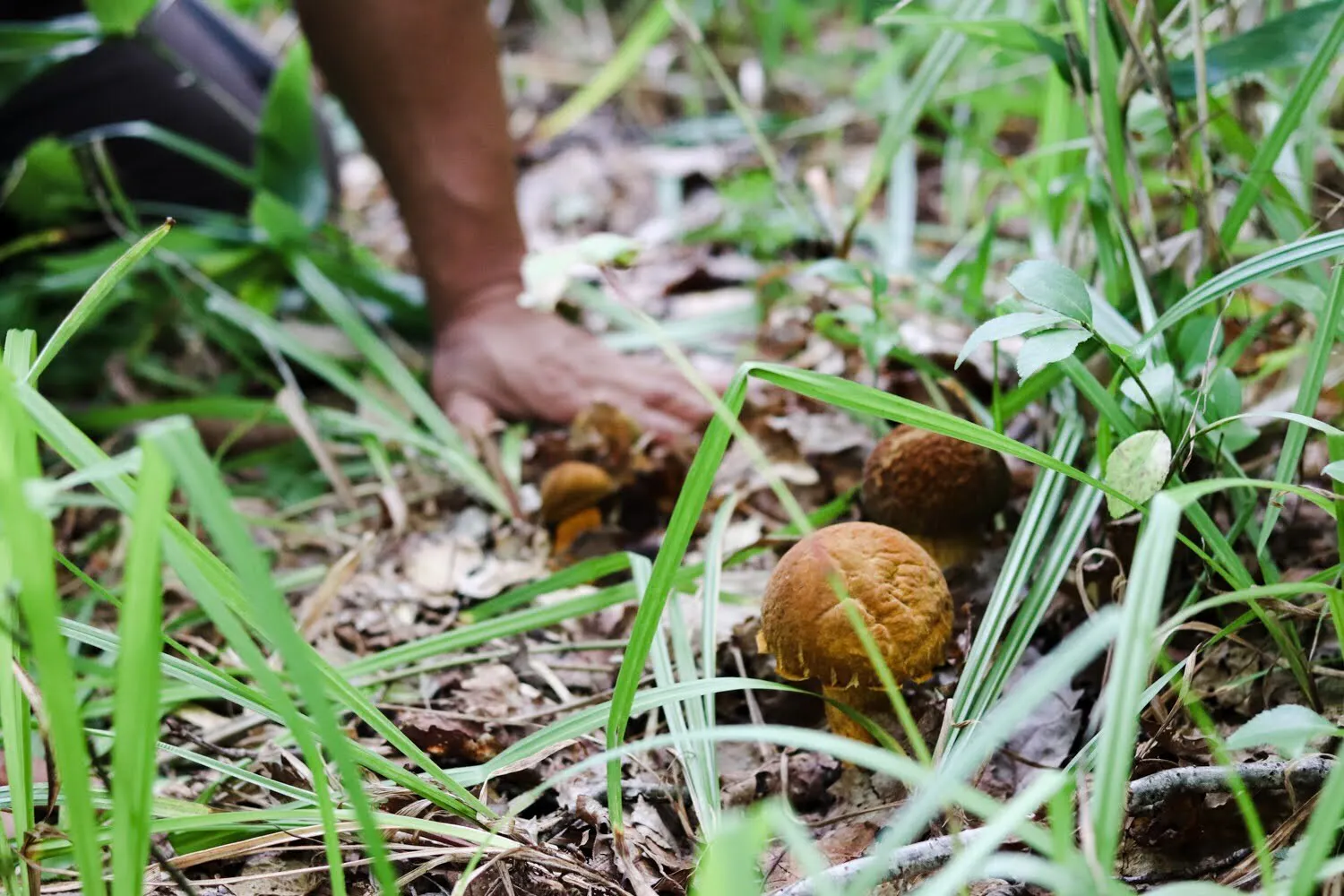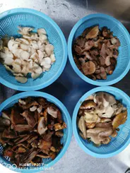 今年9月に採集した、滝上では多くみられる大型のアカヤマドリダケ、そのほか、さまざまな種類のキノコを採ることが出来ます。