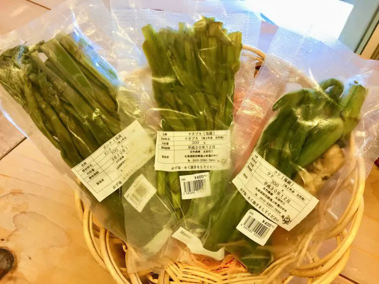 ※例えば…ワラビ、フキ、ボンナ、コジャク、ボリボリ、ラクヨウ、ユキノシタ などから4種類ほどお送りする予定です!
