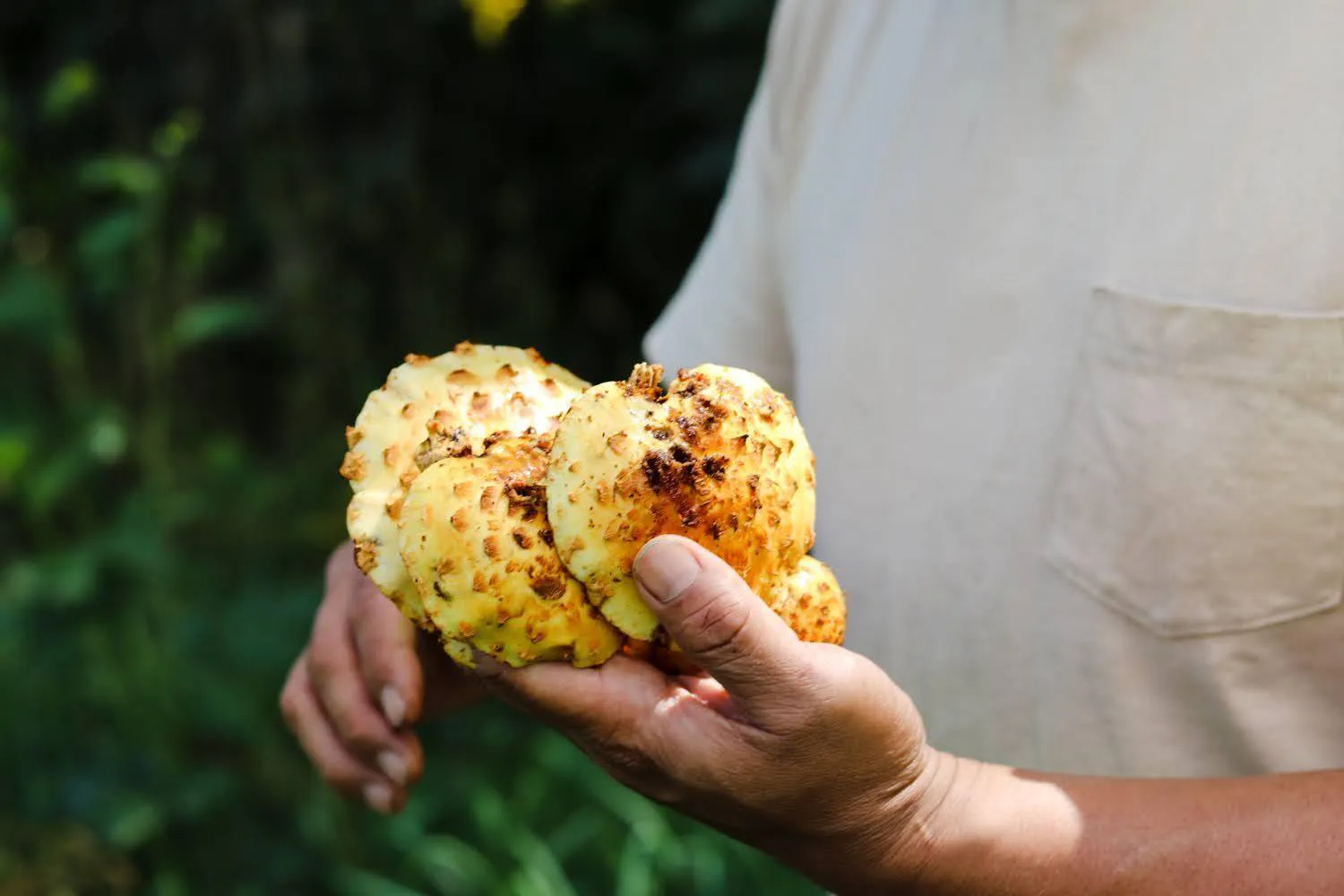 キノコ仙人タケゾーさんは、下処理の後、すべてを塩漬けにし、保存食にする。