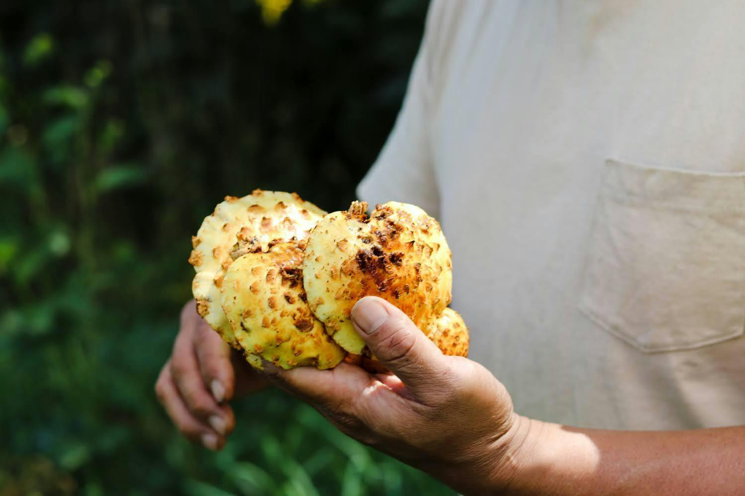 どの山の、どの斜面に、どんな野草やキノコが生えているのか熟知しており、季節の移り変わりを敏感に察知し、だれよりも早く季節の味覚を地域に届けてくれる、僕にとっては仙人のようなおじいちゃんです。