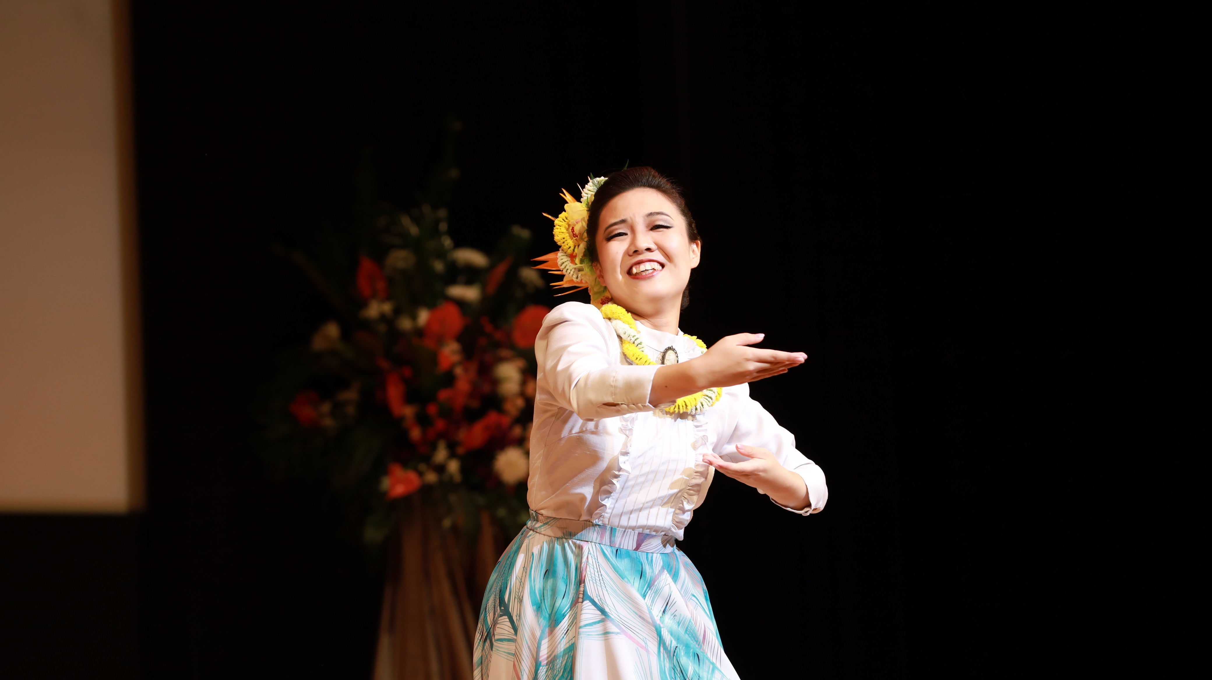 更に、カレッジフラコンペティションはこれまで述べてきた「若年層フラダンサーの育成」に貢献していることも特筆すべき点の一つです。プログラムの中に必ず「未来枠」という時間を設け、未来のフラダンサーの皆さんに大きな舞台で踊る機会を提供しています。そして何よりも10年間の歴史の中で、カレッジフラ卒業生でフラ最高峰の大会「メリーモナークフェスティバル」に出場した方や、その入賞者として前述の「ナ・ヒヴァヒヴァ・ハワイ」に出演した方もおり、現在はフラの先生としてフラを教えている方も多くいます。卒業生の中には大学で教えてくれた先生の元でフラを習い続ける人も多くなってきており、フラ業界の活性化や循環に貢献できていると自負しています。