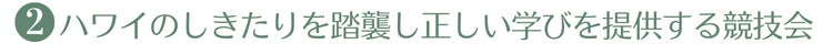 更に、若年層ダンサーが育つことは、フラはもとより、旅行・留学・アパレルなどのハワイ業界全体の活性化につながります。ハワイに対しても、フラという文化が他国の人たちに正しく伝わるということにおいて、少なからずの貢献をしているのではないかと感じています。正しい普及・継承は民族の伝統や文化の根幹です。本イベントは、小さい規模から始めます。その中で、「フラの今後の発展のためには何が大切か?」ということを、参加される皆様にも感じて頂けるイベントを目指します。続けることにより、ハワイへ貢献するイベントでありたいと考えています。