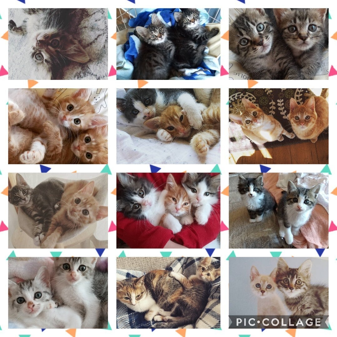 現在(10/5)は、幼齢猫(生後10日前後~1ヶ月まで12頭)、子猫(1ヶ月~6ヶ月まで7頭)が治療をしながら頑張って成長しております。