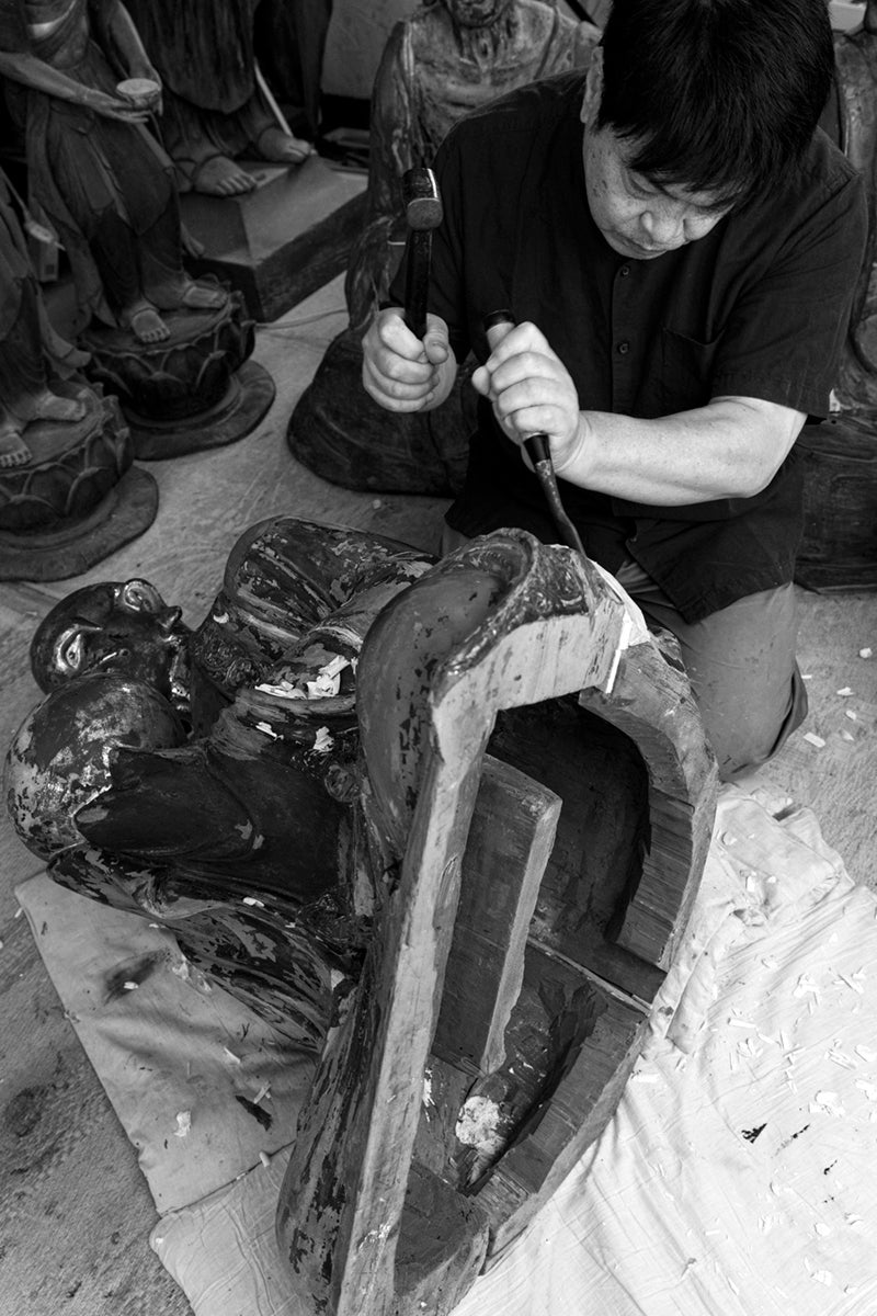 そして、私は羅漢像を後世に伝えようと修復に取り組む修復家・長井武志氏の技術と姿勢に心を打たれ、その仕事を記録したいと思いたちました。8体の羅漢像と、じっくり向き合い撮影しているうちに、この仏像修復の取り組みを、写真を通じて広く世の中に紹介したいと思うようになりました。
