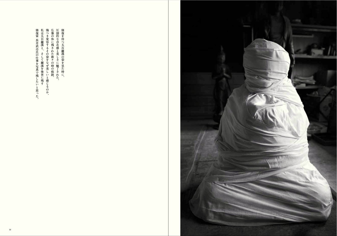 私はあらためて、貴重な文化遺産を未来に継承しなくてはならないと、この撮影を通じて強く思いました。私はこの写真集が仏像修復への興味と理解へのきっかけとなり、これらの羅漢像のみならず、一つでも多くの仏像や文化遺産が修復・継承されることを祈念しています。そして、その実現に向けて、皆様と是非ご一緒に貢献したいと思っています。