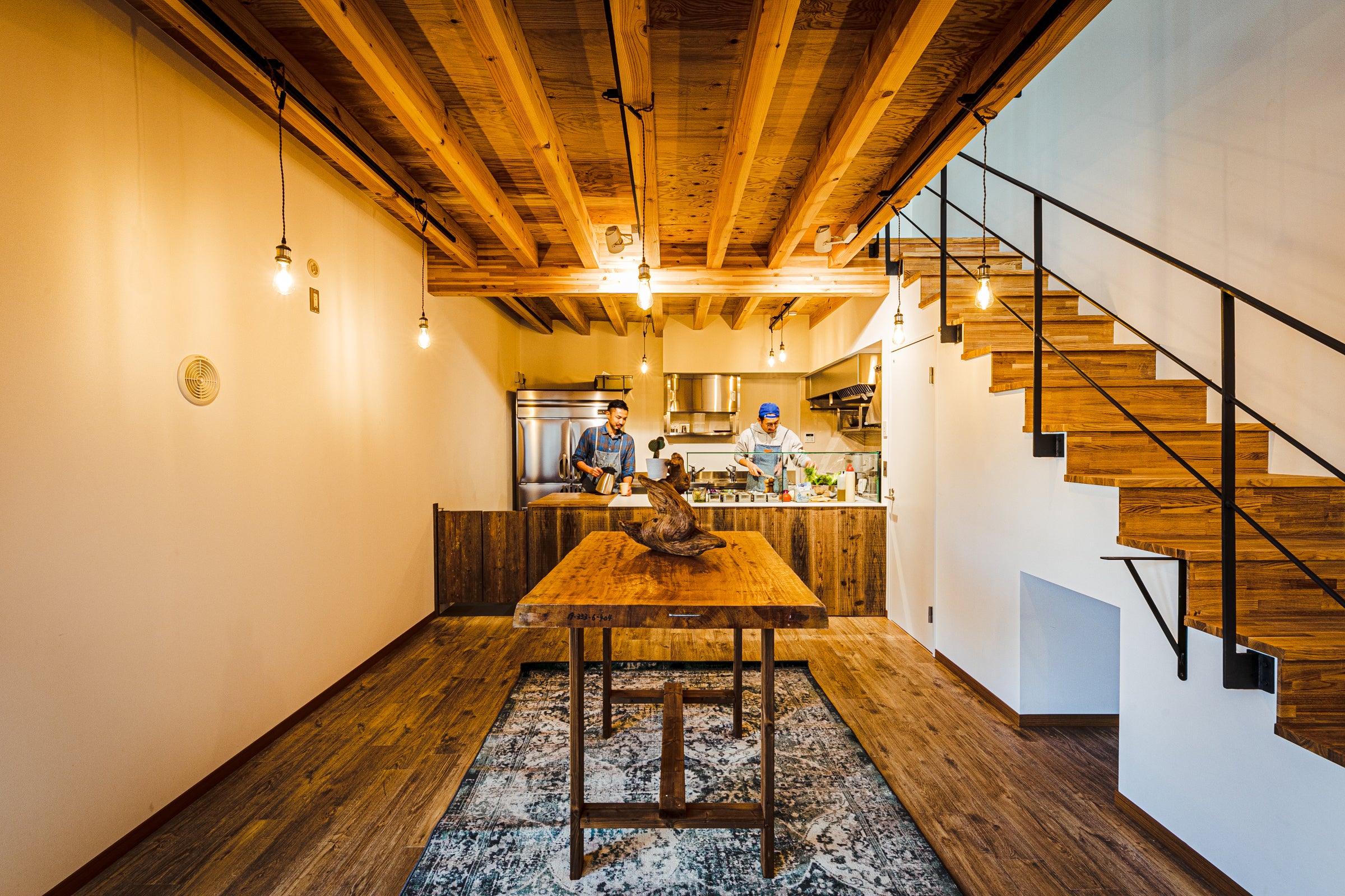1階は大きなテーブルを1つ、2階席もご用意。お店は外観も内装も自分たちでゼロから手がけ、シンプルながら居心地の良い空間を目指しました。