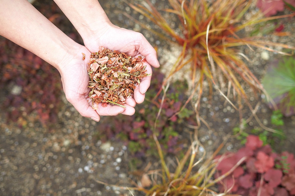 生ごみは天日干しで乾燥させ、肥料として再利用します良い土壌から、美味しい野菜が生まれ、それを無駄なく調理し、皆さんのもとへ届ける。