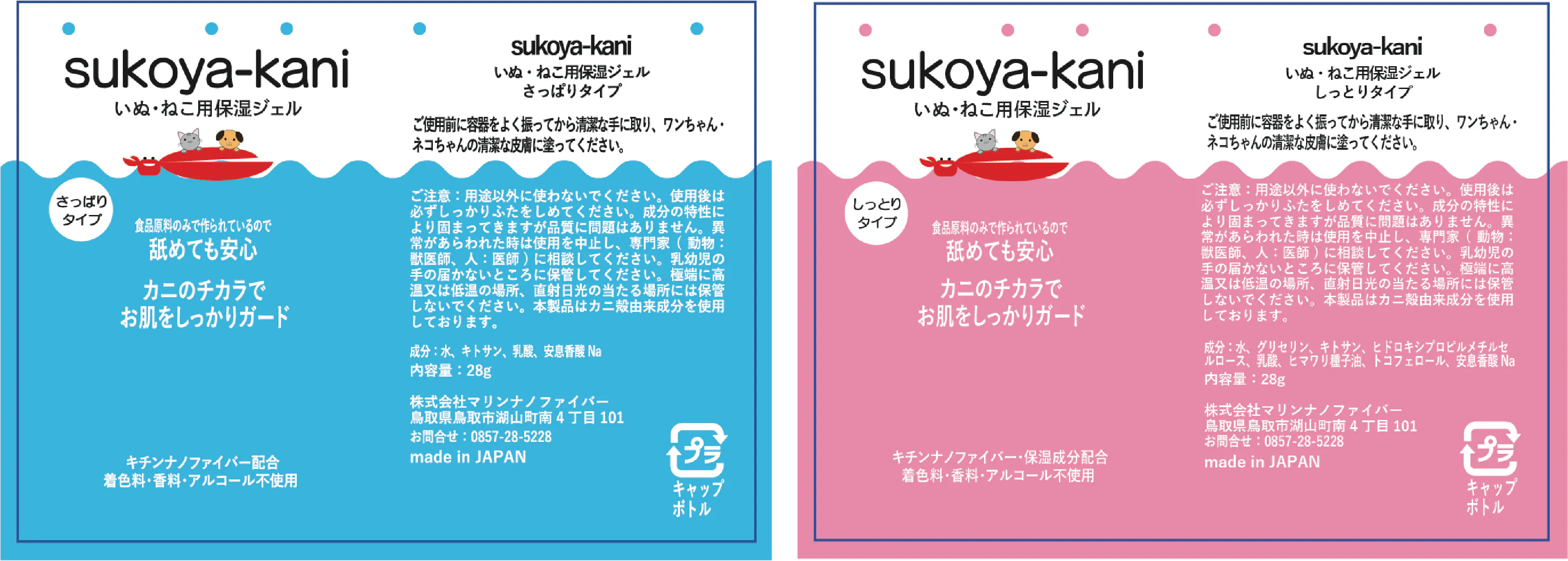 【sukoya-kani いぬ・ねこ用保湿ジェル さっぱりタイプ&しっとりタイプ 各1本セット】