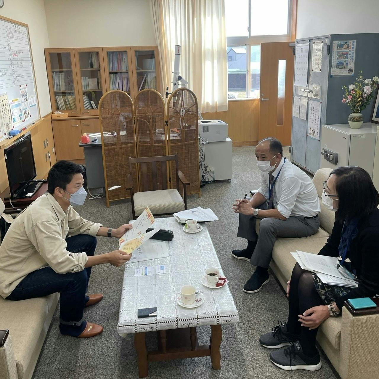 男木島小中学校の校長室を訪問し、プロジェクトの内容について先生方と意見交換をさせて頂きました!