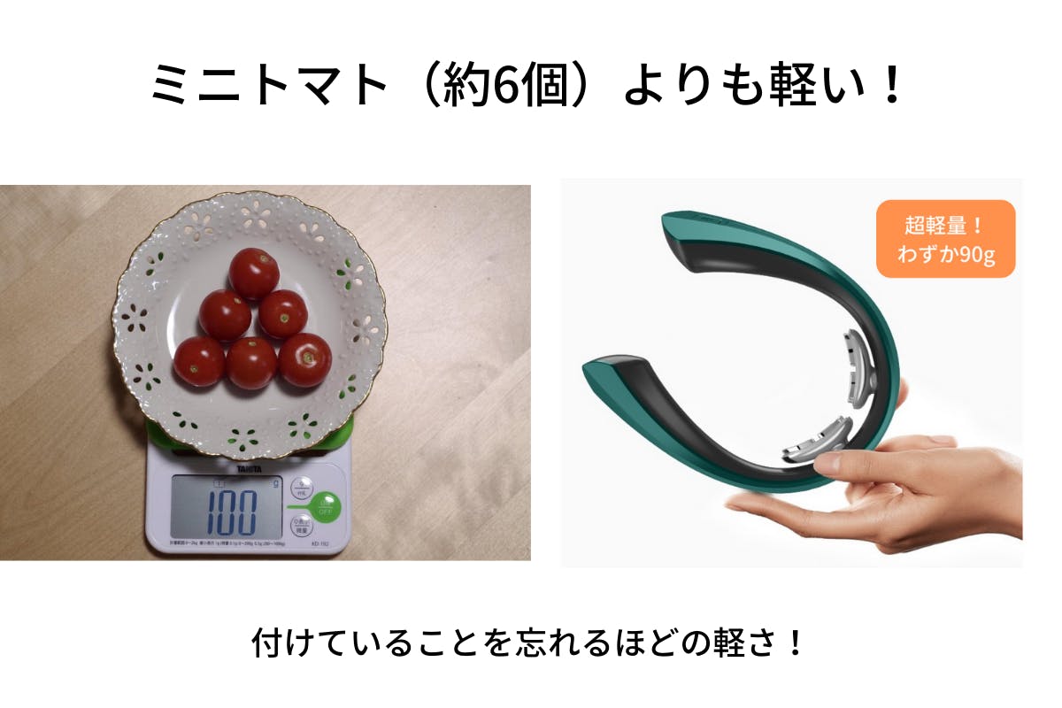 従来の首元を温めるマッサージ器具と一線を画している『Neck Massager』は、優れた技術により軽量化に成功。その重量はなんとわずか90g!業界最軽量クラスなので、つけていることを忘れるくらい。