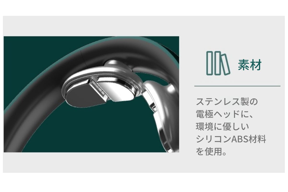EMS(骨格筋電気刺激) に加え、グラフェン温感機能も備わっており、じんわりと首元を温めます。グラフェンとは炭素原子のシート状物質のこと。そのグラフェンにより首周りを42℃でほどよく温めて、首や肩の疲れをゆっくりとほどいてくれます。