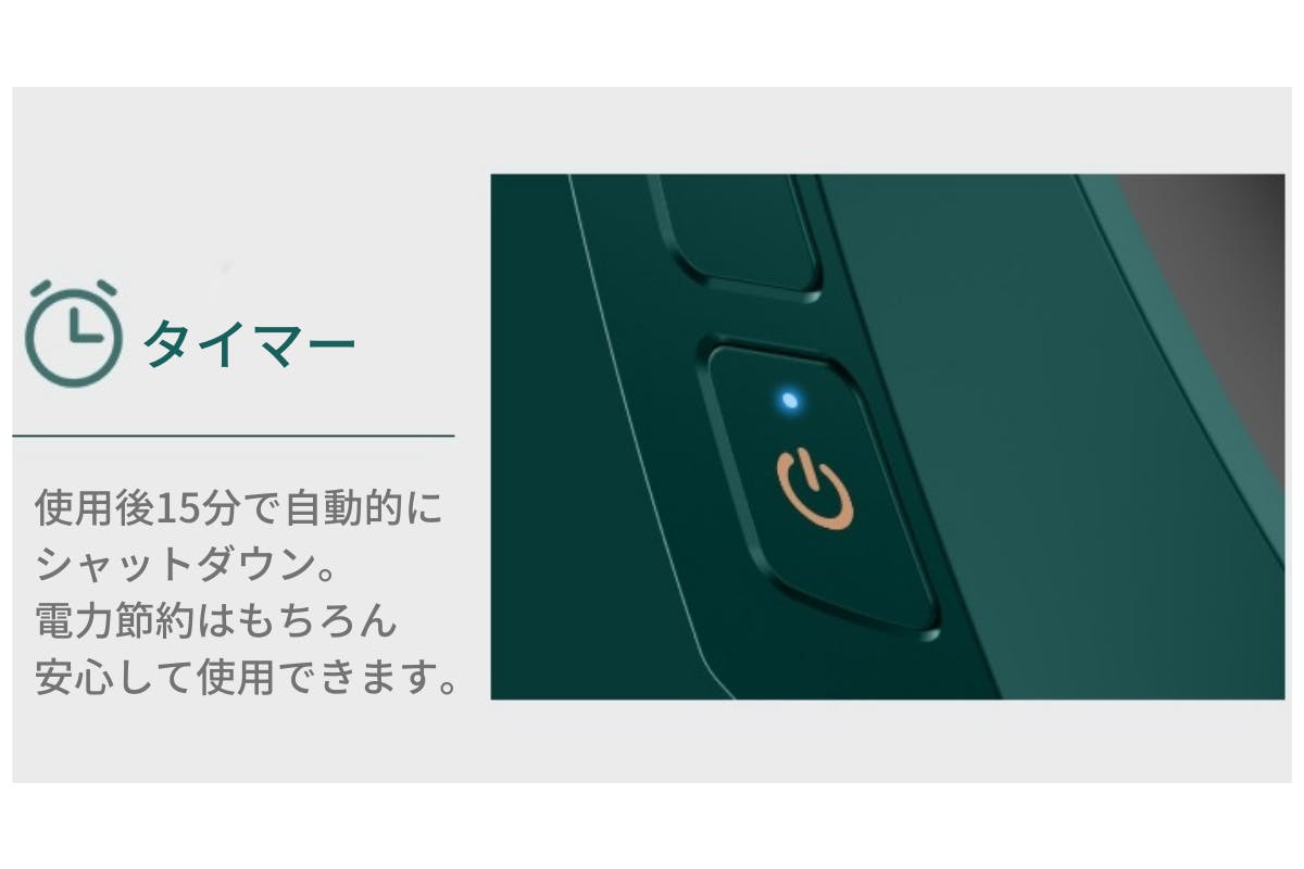 万が一電源を切り忘れても、使用後15分で自動的にシャットダウン。
