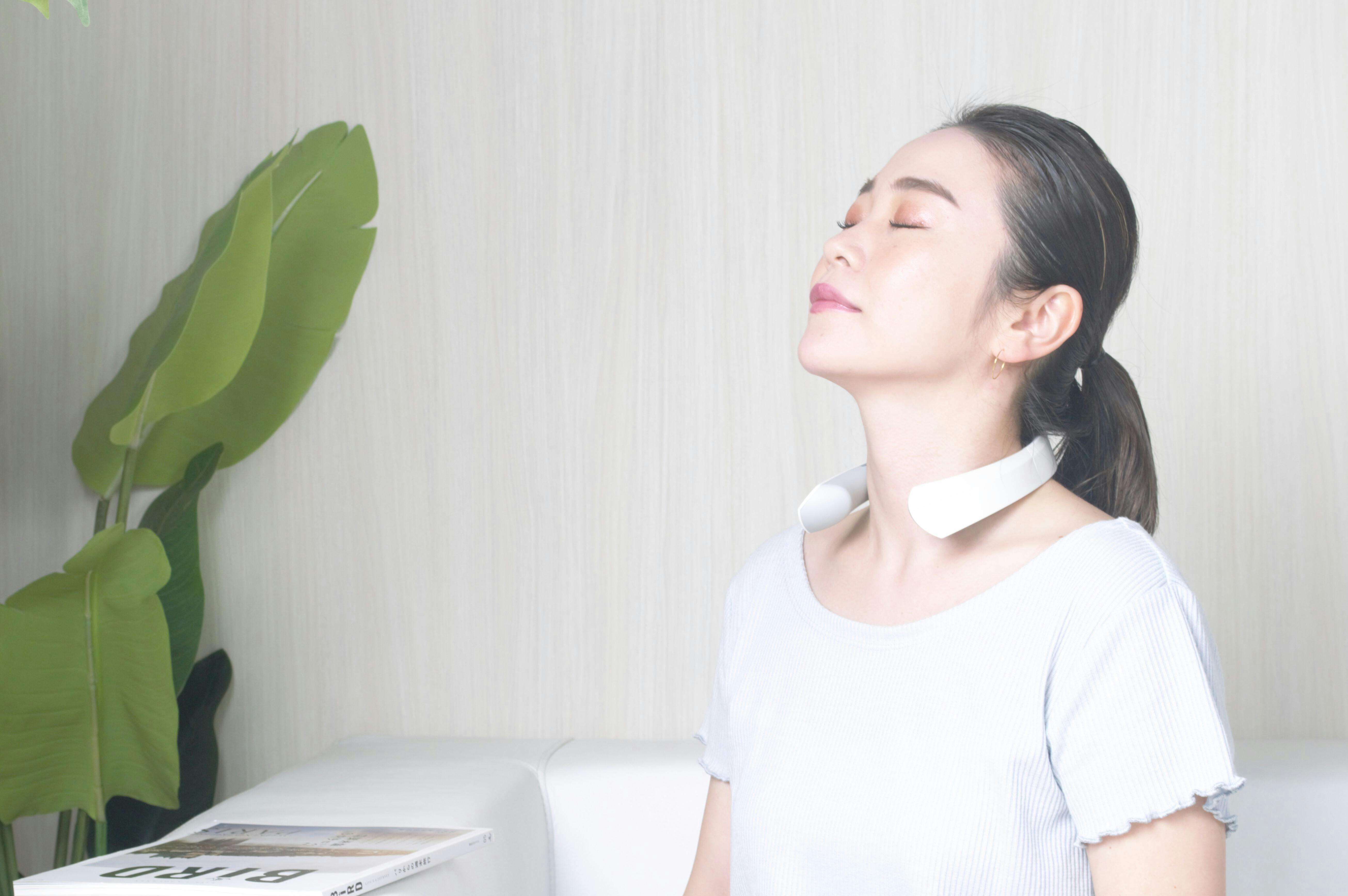 超軽量EMS温熱マッサージャー『Neck Massager』は、現代女性の間で急速に広がってきた首元の冷えや、肩や首を酷使することからくる『頭の重さ』の悩みに対して、EMS(骨格筋電気刺激)で筋肉にほどよい刺激を与えながら、同時に首元をじんわりと温める新感覚のネックヒーター。