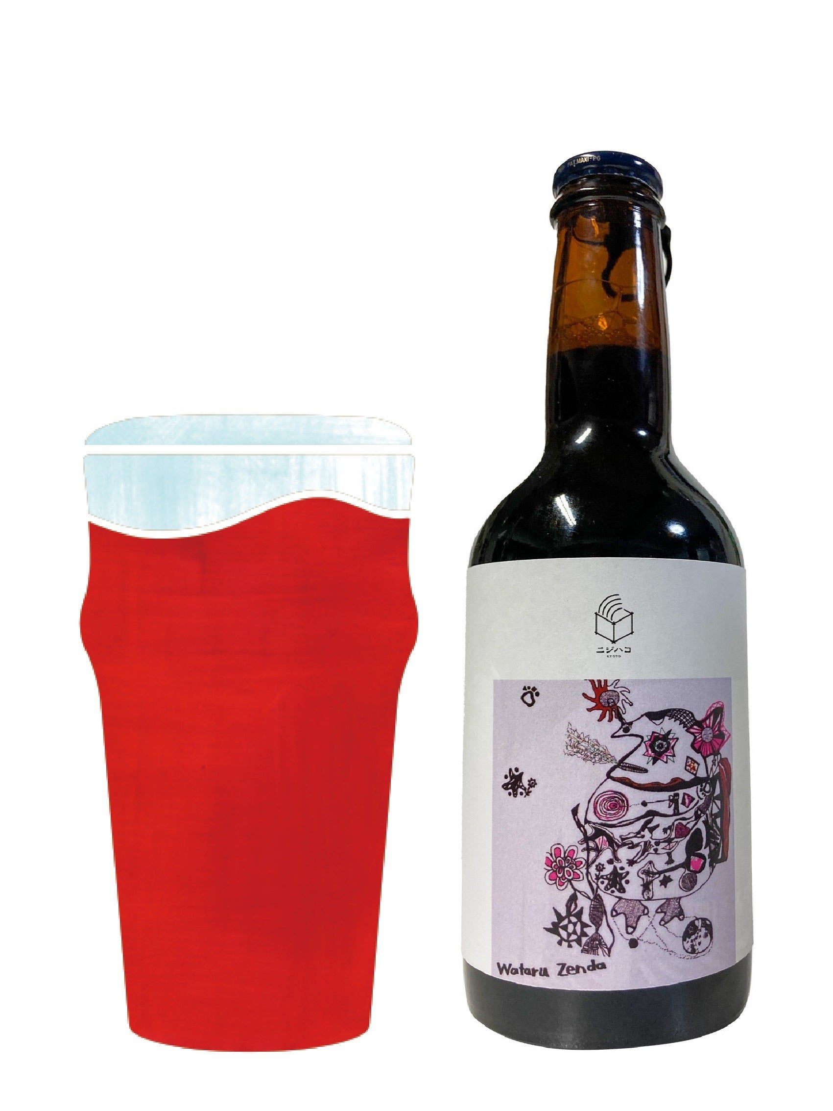 可愛らしい桃色の色と、宇宙華丸の”華”という文字より赤色のビールをチョイス!