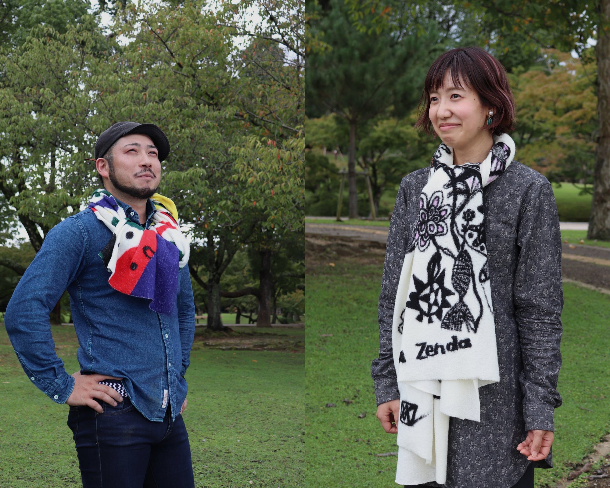羽織ると絵がよく見えて、マフラーのように巻いてもかわいいデザインでとても気に入ってます!(東京都在住)