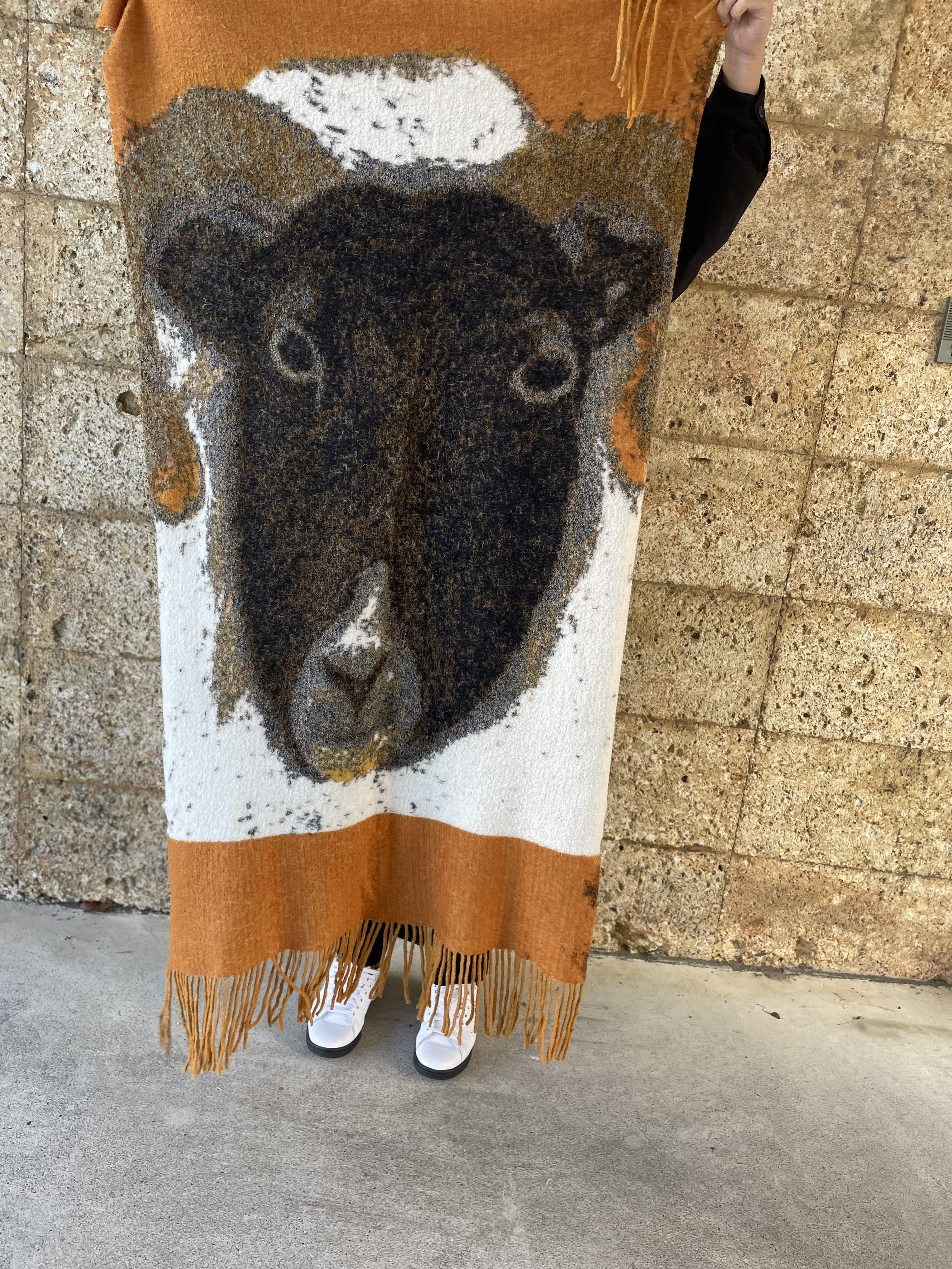 ★この一枚から始まりました!フリンジ付きの黒山羊ストール