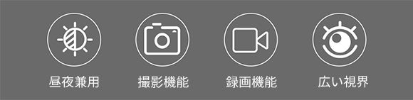 ナイトビジョンを搭載しているため、夜間でも静止画・動画を撮影できます。赤外線の強度も三段階あり、必要に応じて自由に調節可能です。