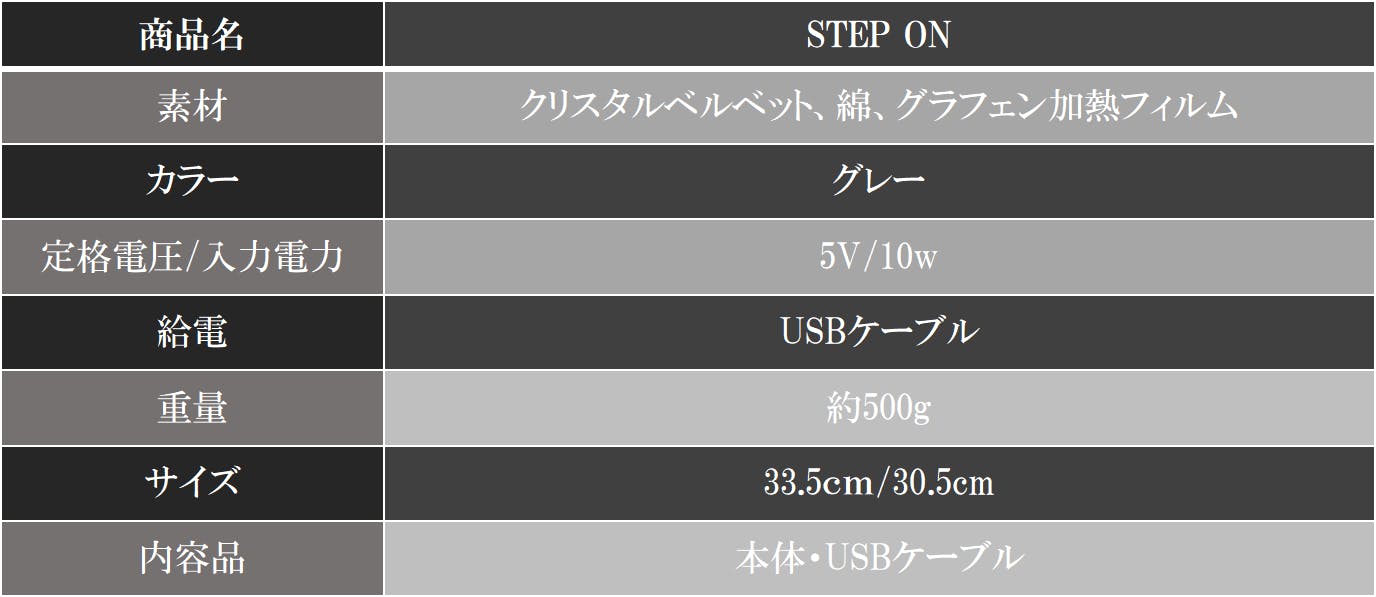 【STEP ON】は3段階に温かさを調節できる機能。3段階の高周波振動。グラフェン素材の採用。