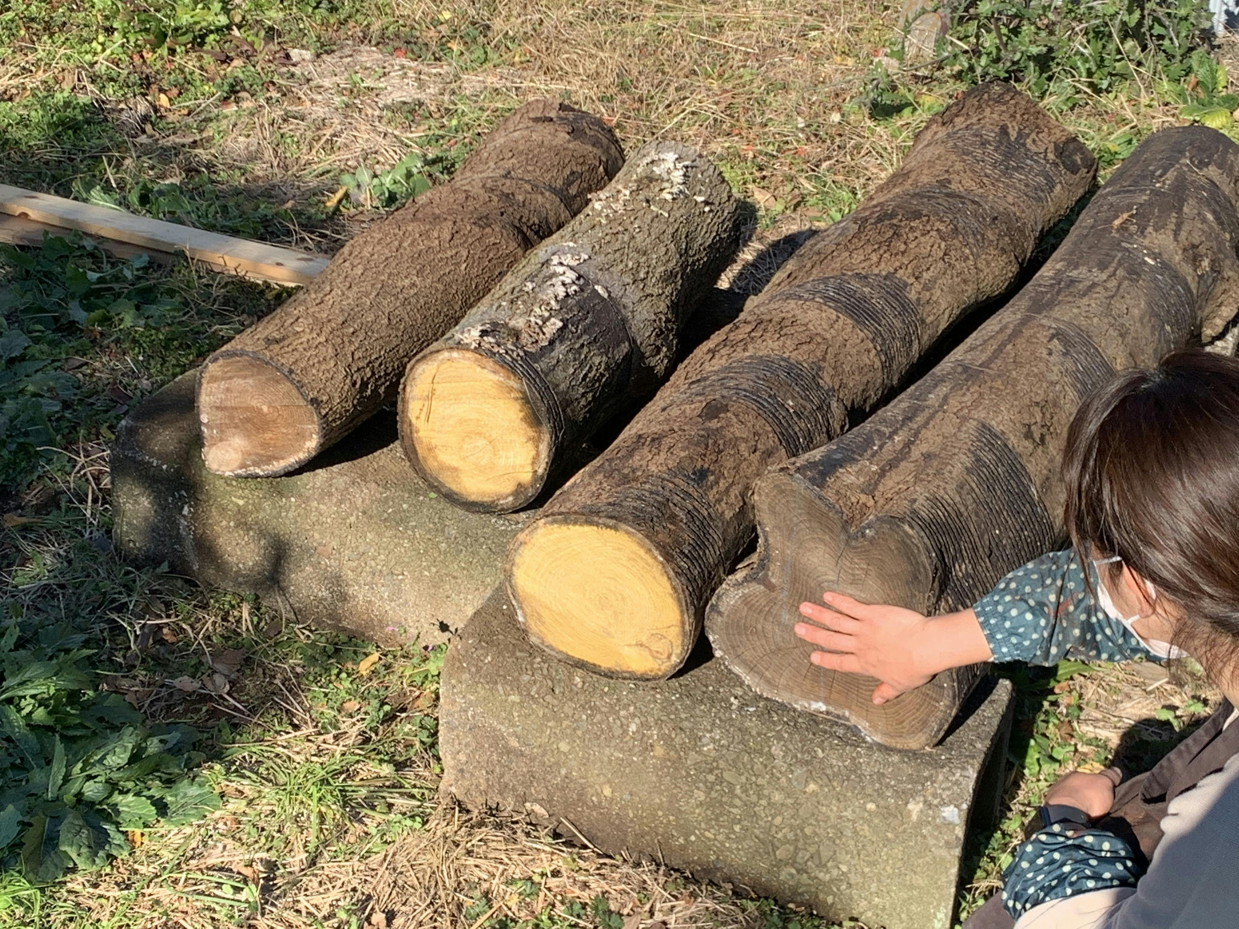 伐採から間もないのでまだ水分たっぷり。。1.5mほどの長さでも男性2人で運ぶのがやっとという重い立派な木。日頃からお世話になっているNPO法人ウルシネクストの佐々木さんが、岩手から車で運んでくださいました!