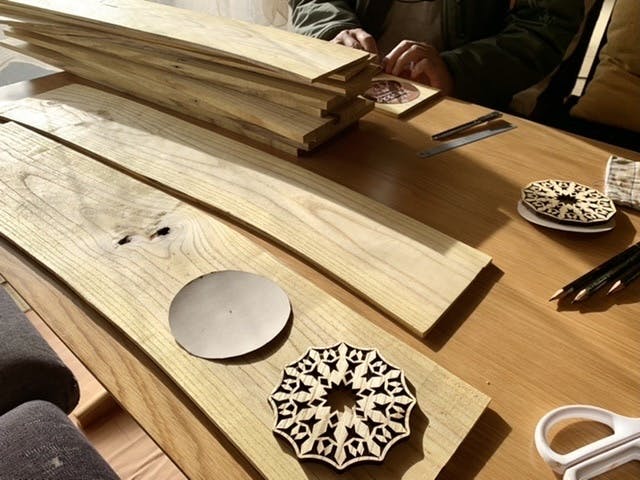 クリスマスまでにお届けしたいので、製作下準備をすでにスタートしています。昨日はレーザーカット前の板材に印つけ。