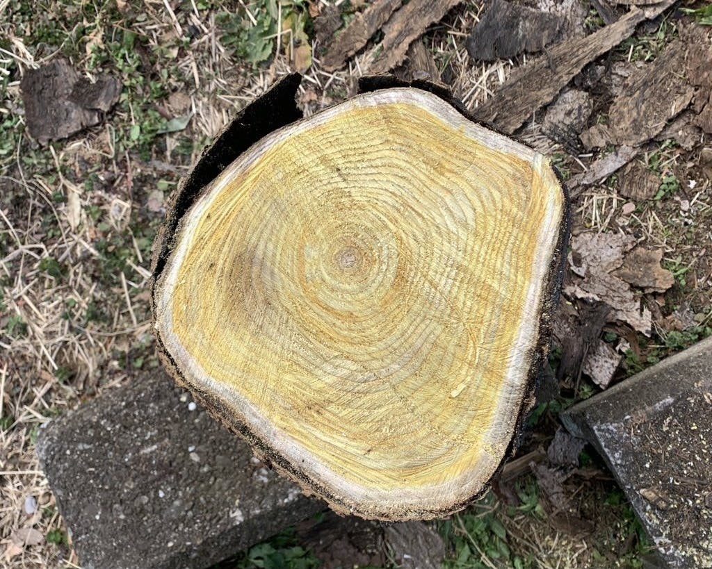 樹皮を残したかったので手鋸でそっと切り込みを入れ、そのあとは人生初のチェーンソー!ゴーグル装着で少々ドキドキでしたが、楽しかったです(笑)