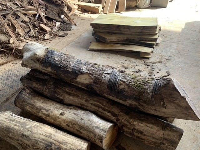 岩手と茨城から譲り受けたウルシの木を埼玉で製材しました。今回はどれも太くて重かったー(ウルシにしては…ですw)。 #縄文うるしパーク のメンバーたちが協力してくれました。