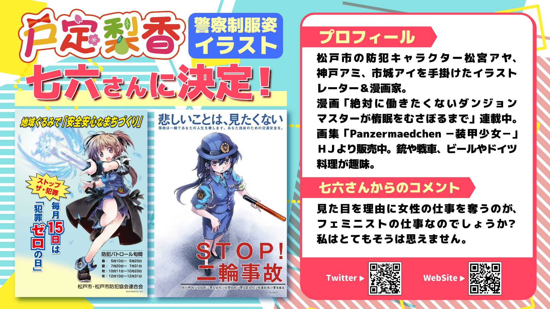 そして、戸定梨香のクラファン限定の警察制服姿イラストは、七六様に描いていただくことが決定いたしました。