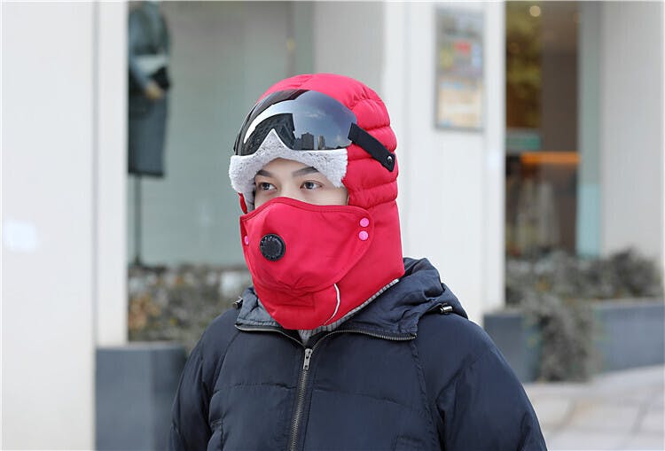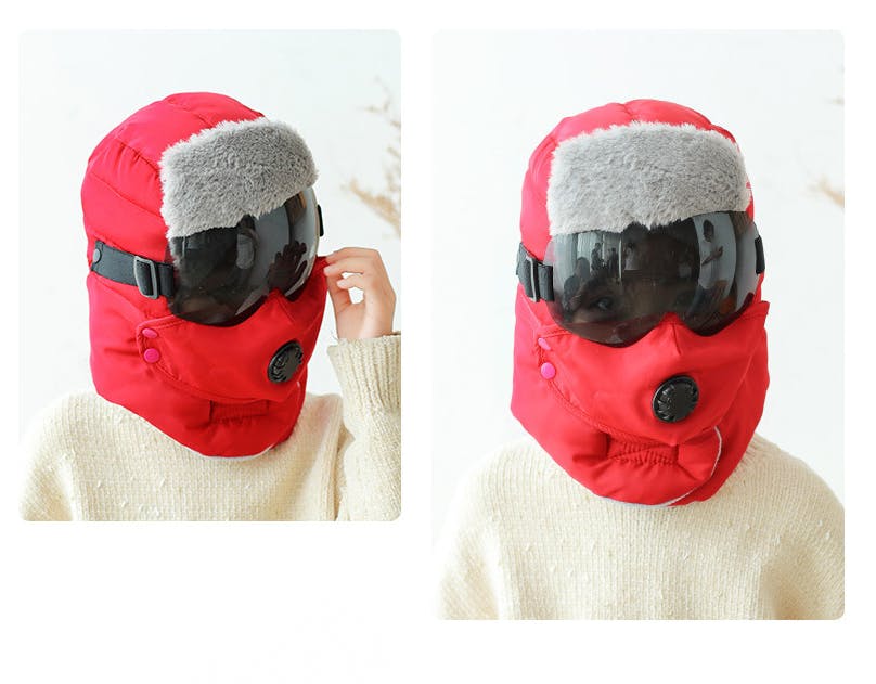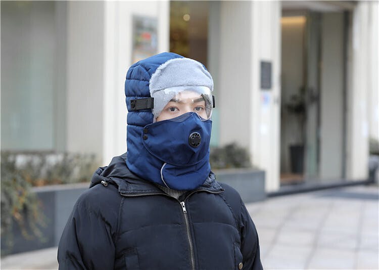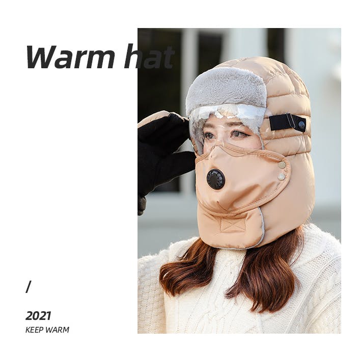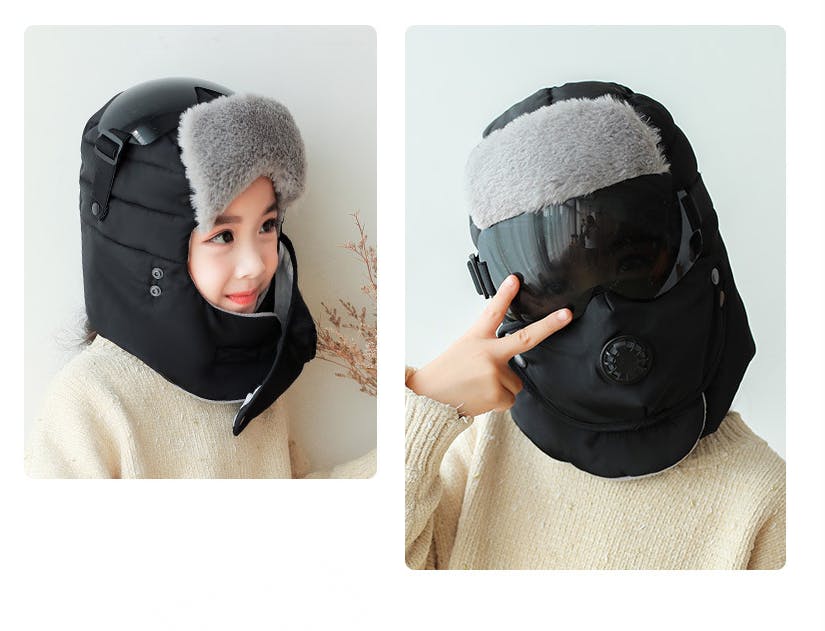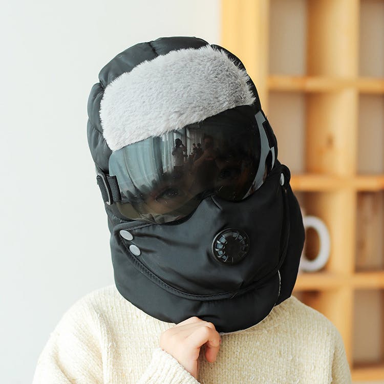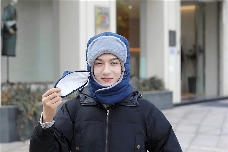 このような悩みの解決に向け、開発した4㏌1防寒帽はニット帽、耳当て、マスク、マフラーが一つになった便利グッズ