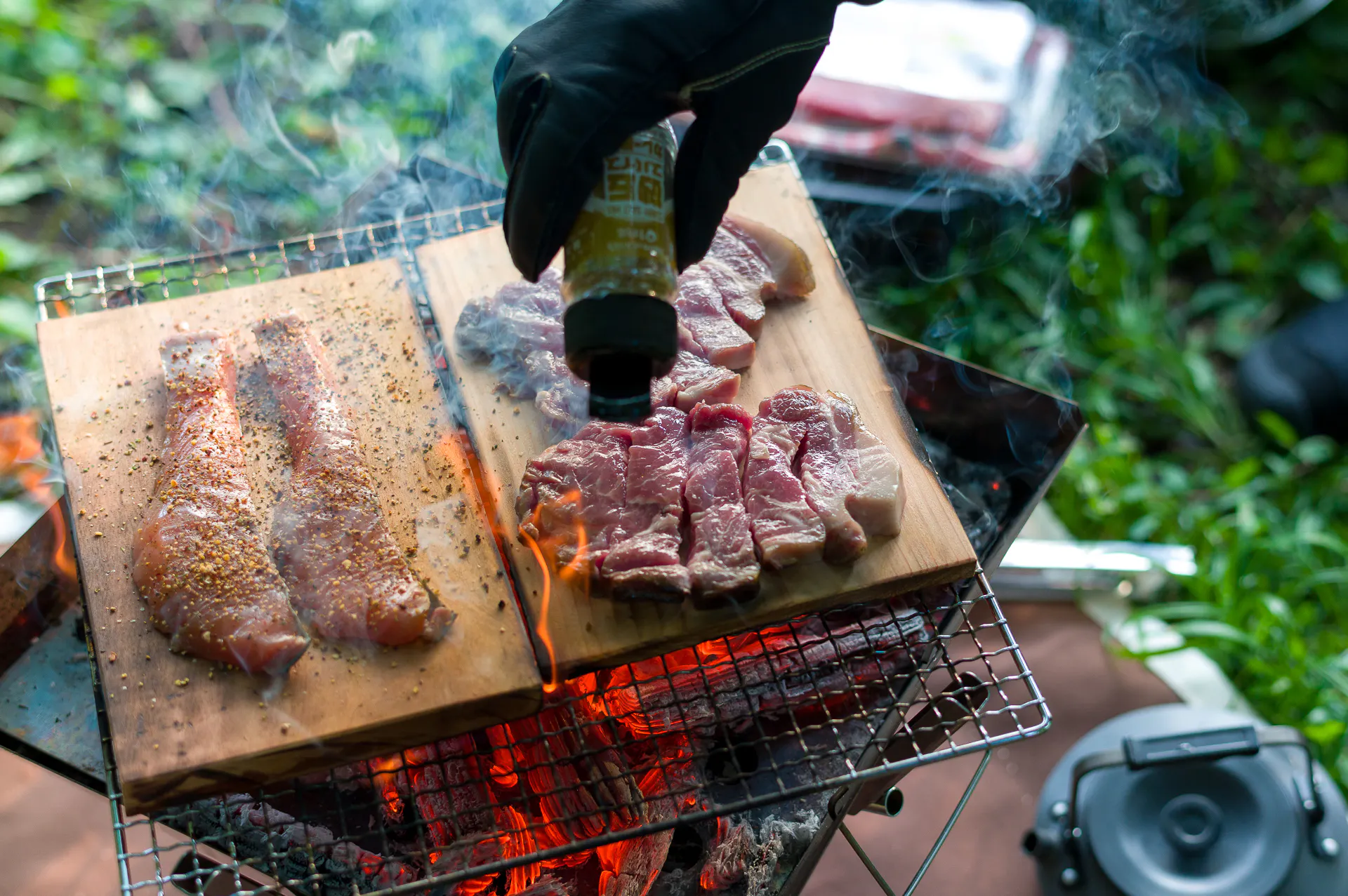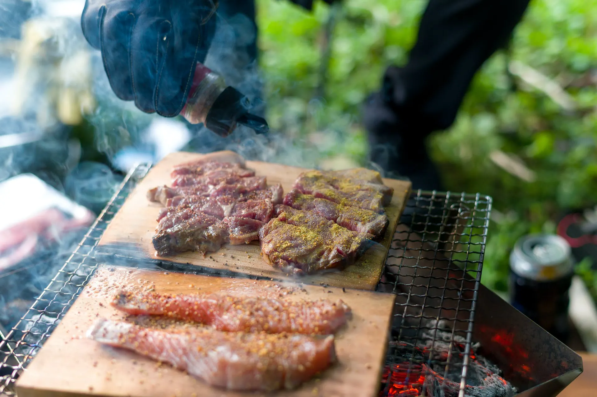 木の上で食材を焼くことで、燻製のような香りがつき、食材のうまみを引き立たせてくれます。