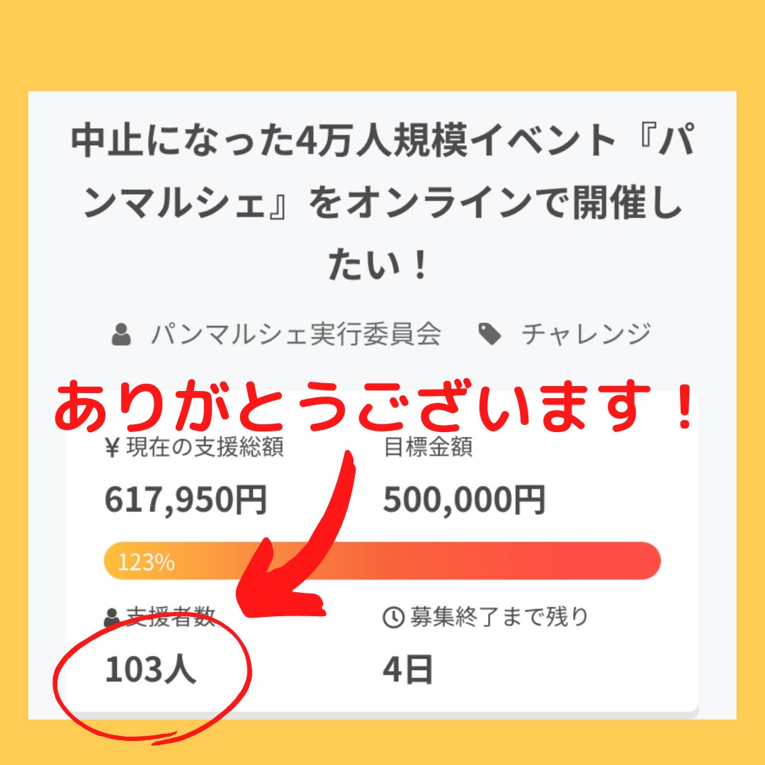 お陰様で、103名様に想いが届き、本当に嬉しく思います。