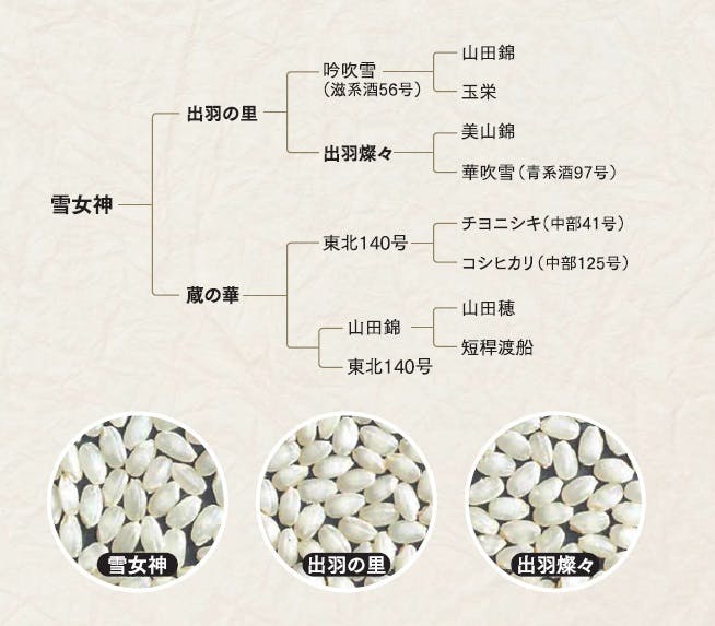 そして2015年、遂に大吟醸に適した「雪女神」が完成しました。「出羽の里」に「山田錦」の系譜をもつ「蔵の華」という品種を掛け合わせて誕生したものです。