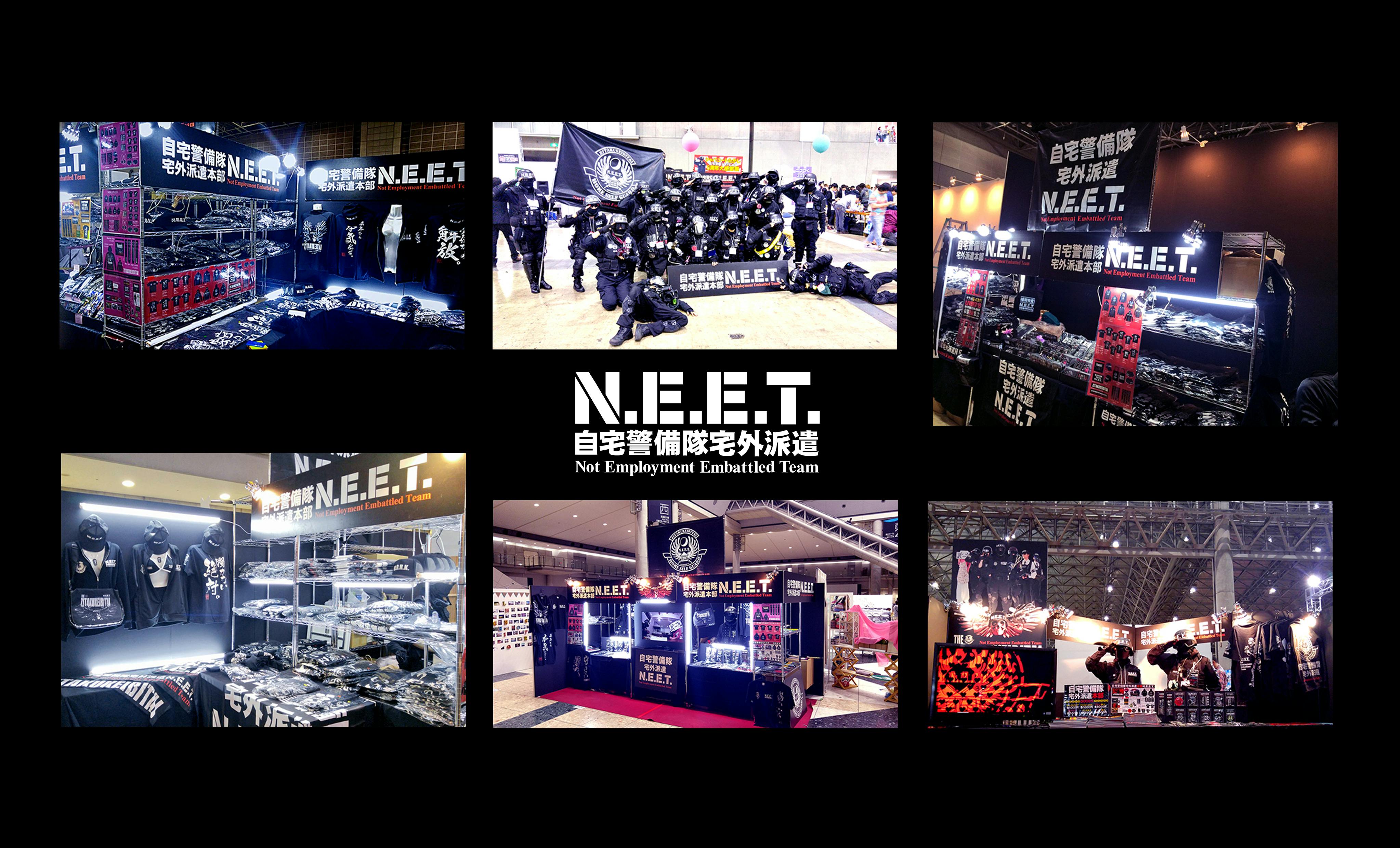 自宅警備隊のアパレル・グッズ等を今までに100点ほど展開してきました。そして年間で50件ほどのイベントに出展し自宅警備隊の布教活動の為に『宅外派遣』を行っておりました。