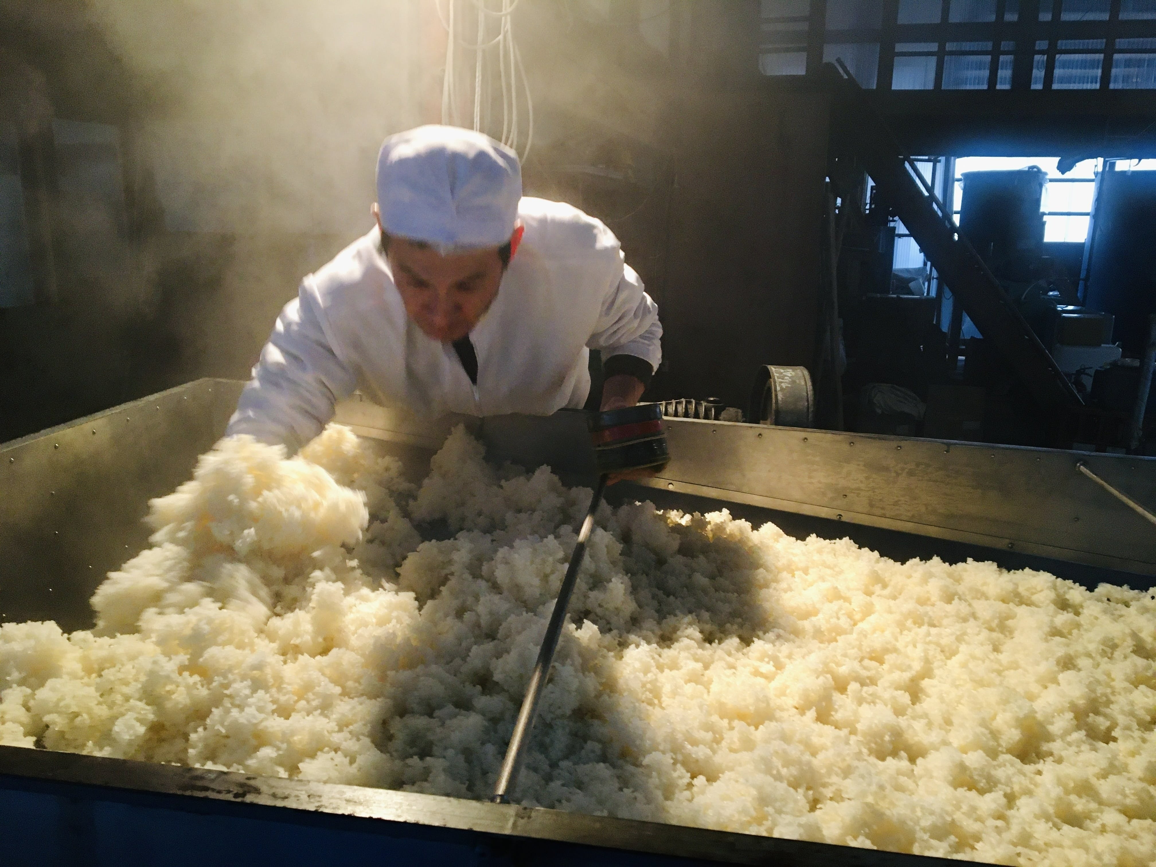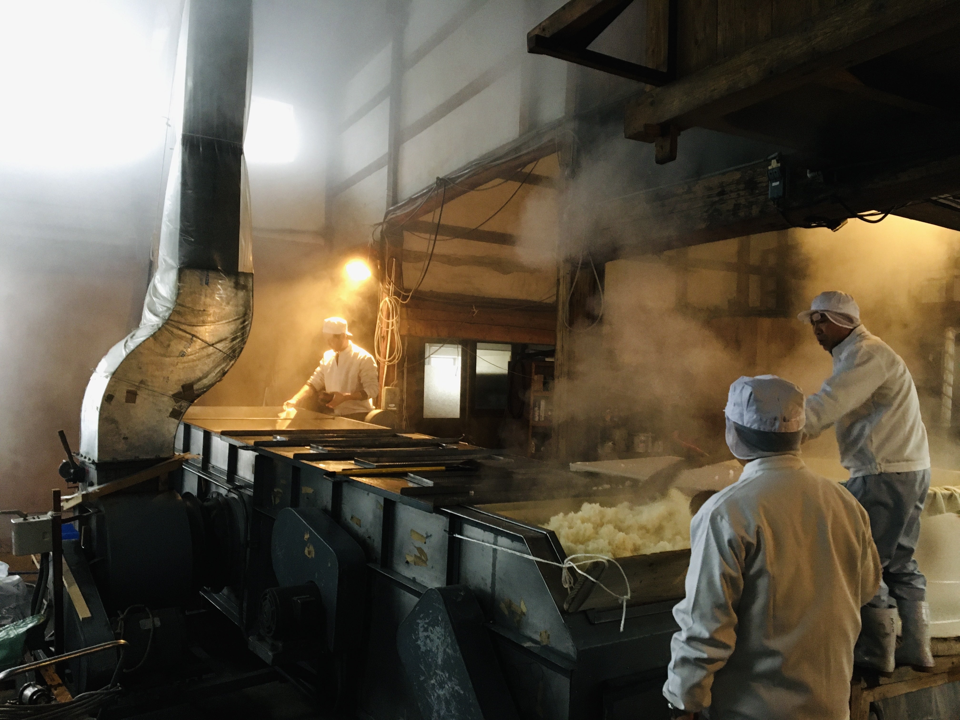 新しいメンバーを迎えたとはいえ、蔵人の人数が少ないため、私も白帽子、作業着姿で杜氏と一緒になって酒造りに参加しています。杜氏は初めて作業する蔵なので、昨日も夜の12時近くまで麹のお世話をしておりました。麹には繊細な温度管理が求められており、麹の生育状況をこまめに管理することが、美味しい熟成酒造りにも繋がるのです。酒造りは7割がその作り手の個性と人間味を反映します。新しい杜氏の真摯な酒造りへの姿勢が、どう味わいに出てくるのか、そしてこのお酒もまた今後どのような変化を遂げていくのかもとても楽しみです。