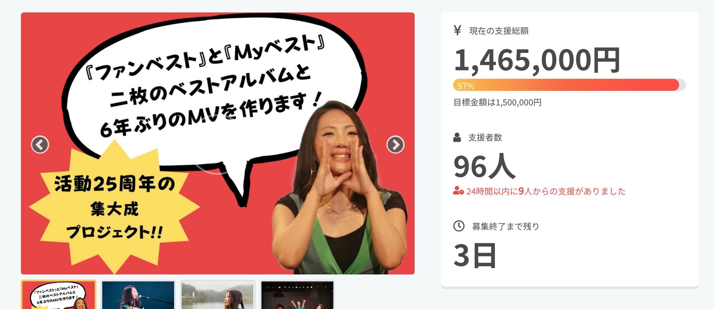 この数日で、本当にまたまた、ものすごいたくさんの方がご支援いただき、現在97%(¥1,465,000)を達成!!
