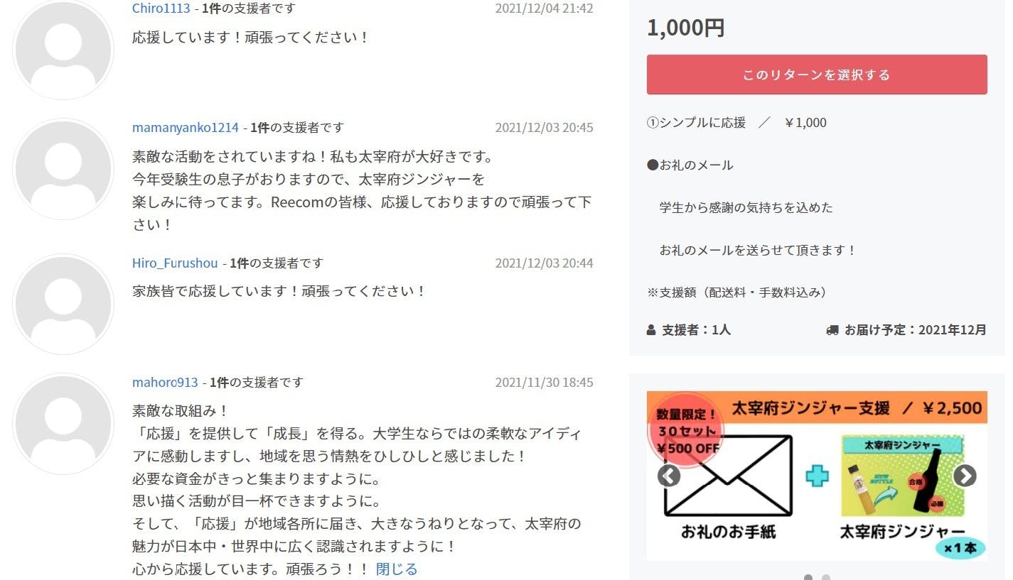 何より支援者の方々から暖かい応援のメッセージをたくさんいただいています!