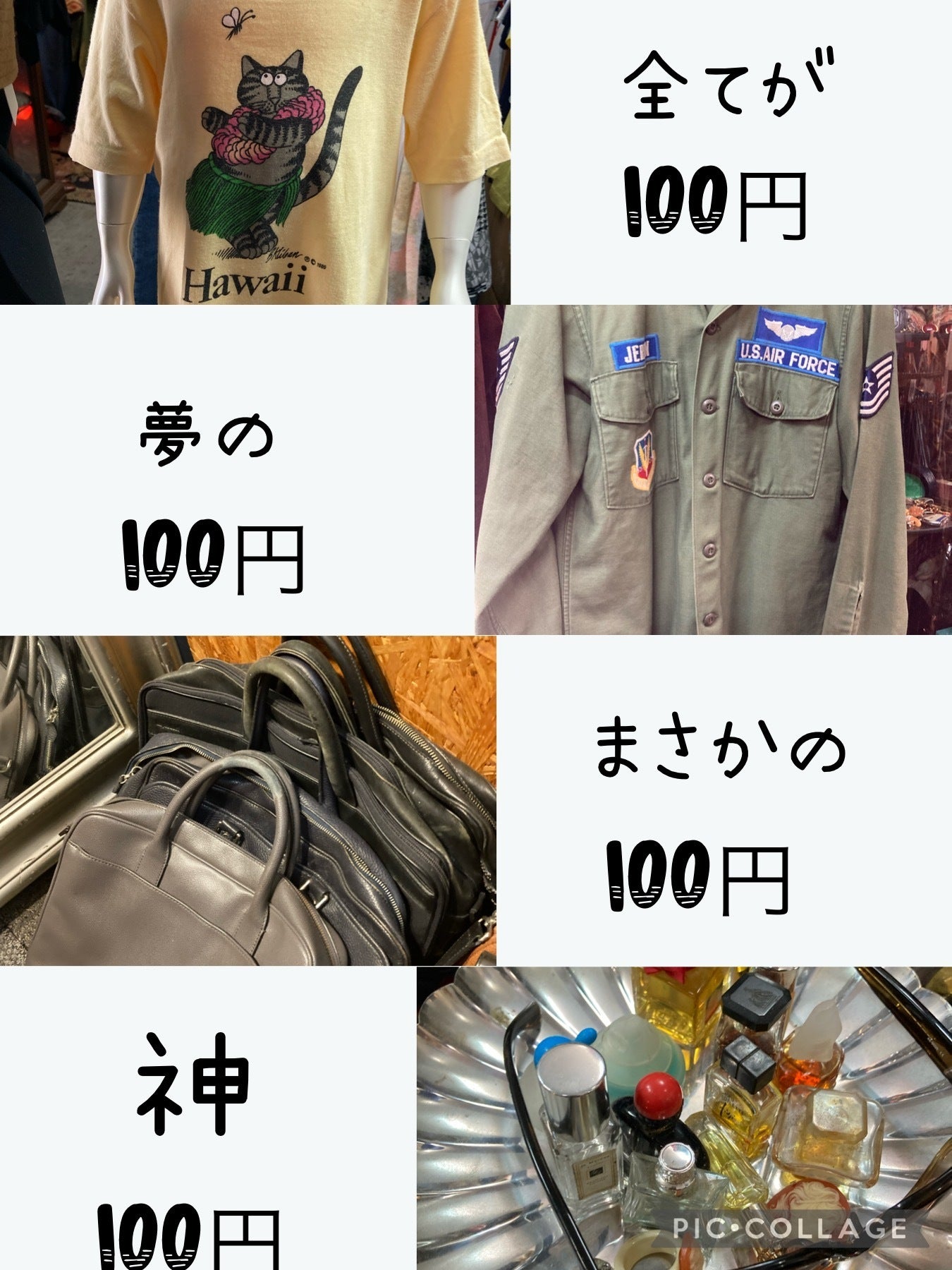 日本一安いお洒落な古着屋さんになります。税込100円 靴も、バックも、マフラー、手袋、アウター、セーター、tシャツ、パンツなんでも全てが夢の様な100円均一です。しかも、バイヤーが一品一品チョイスした品をご用意させて頂きます。