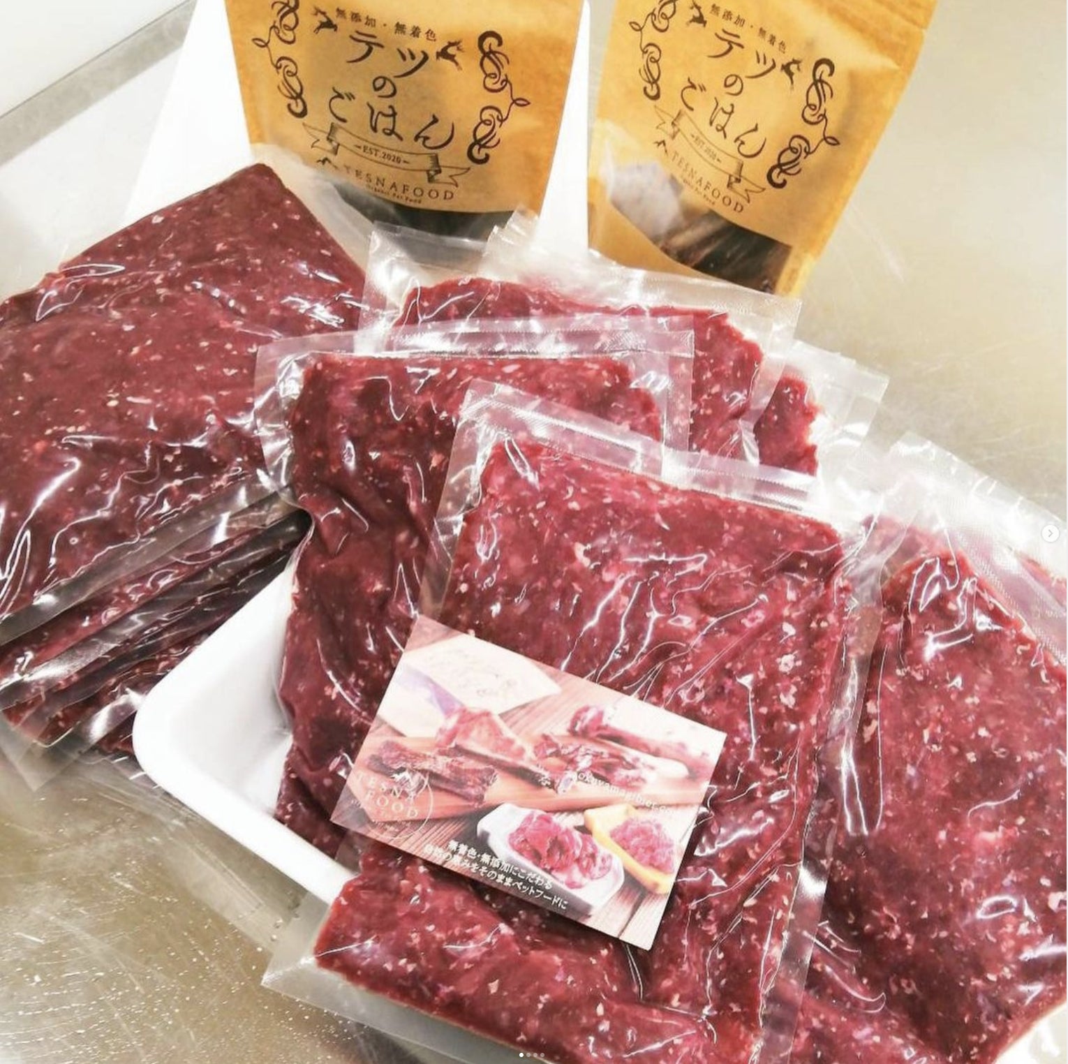 わんちゃんねこちゃん用の鹿肉ミンチの超お得大容量パックの販売をしています!1個【1パック500g入り×2】→2000円(税込)送料 一律1100円(税込)6個以上のご注文で送料無料です。鹿肉って価格高いしなーって思われる方へ!5kgのわんちゃんで1日、約62gが給与量目安です。1日3食のわんちゃんですと1食あたり40円です。わんちゃんねこちゃんの健康のことなど考えてもかなりお得ですよ。生食に慣れている子は生食で慣れていなければ真空パックのまま湯煎をして小分けにしてから冷凍、又は冷蔵で保存していただくと与えやすいですちなみに動画の子は生食初めてのパピーです。初めは少し様子を見ていましたが、その後数秒で完食です。TESNA FOODでは当たり前のことで、あえて大きく宣伝していませんでしたが、使用している鹿肉はレストランに卸すお肉を処理する処理施設で、人間用のお肉と一緒で食品衛生を徹底した工程で製造しております!!ご注文お待ちしております。これからも、わんちゃん・ねこちゃんと一緒のご飯を楽しめる商品を発信していきます。どうぞ一度ご賞味ください!!