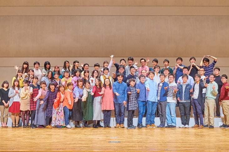 2018年定期演奏会の記念写真2018年の定期演奏会では、坂手洋二さん作の戯曲に曲を付けていただいた委嘱新作「合唱のためのものがたり『じらいくじら』」を含めた4作品を、萩さん自らを伴奏にお招きし、初演を成功させました。