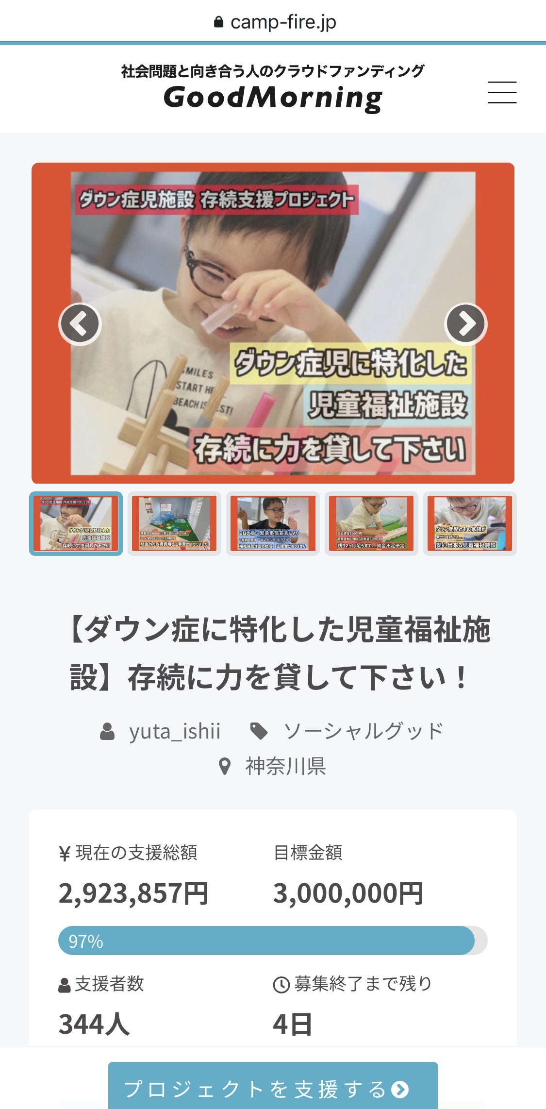 こんばんは。【残り4日】達成率97%残すところ、約74,000円となりました。沢山のご支援を頂きご支援の物資や沢山のメッセージ、プロジェクトのシェアもして頂き本当に本当にありがとうございます。嬉しすぎる気持ちでいっぱいです。残り4日、ご支援・シェアをどうぞ宜しくお願い致します。